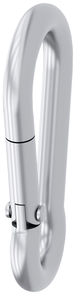 moschettone DIN 5299 forma C, 50mm x 5mm, acciaio inox, imballaggio per ogni set (2 pezzi). Per un facile fissaggio della fune alla molla tenditrice, tirante e vite ad anello. Semplice, efficiente, sempre attuale - il sistema modulare SIRIUS.