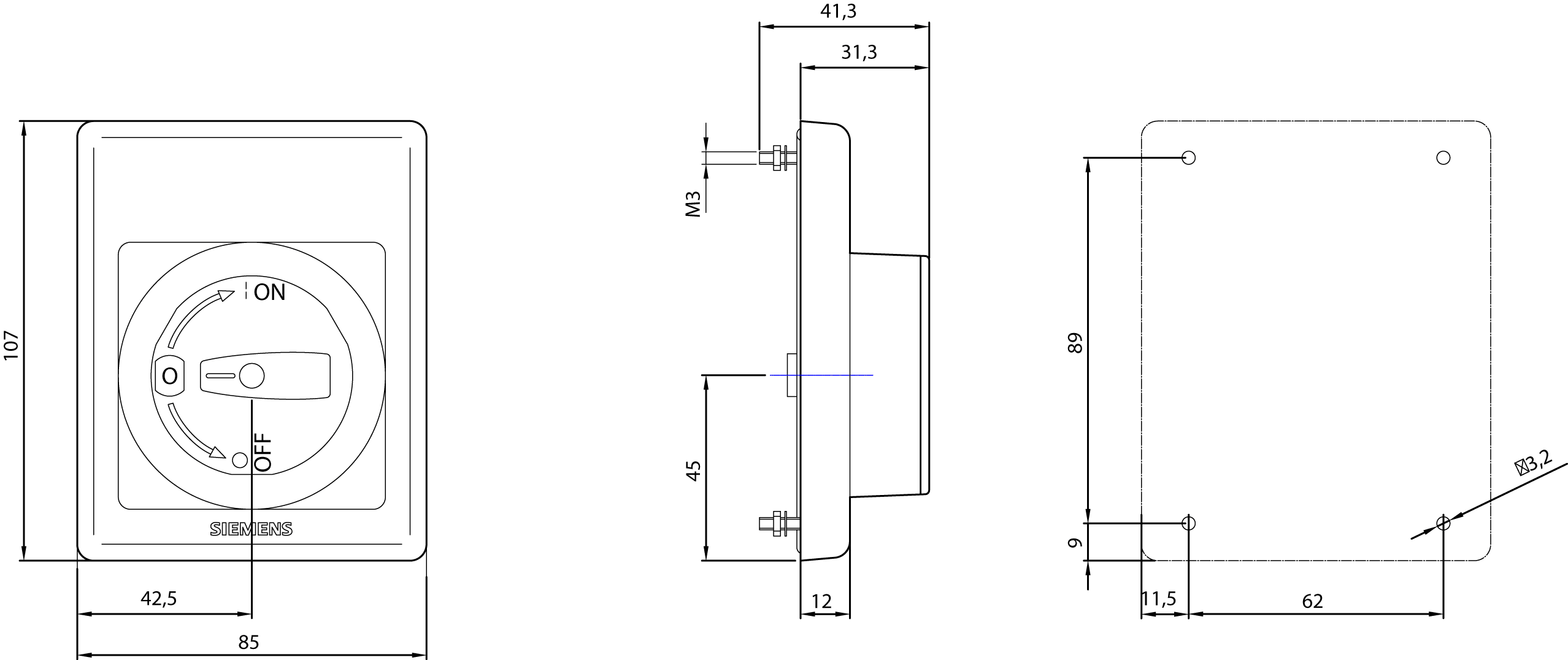 SIEMENS - Mostrina frontale in materiale isolante IP55, comando rotativo, gr. costr. S0, S2, S3 3RV19234B