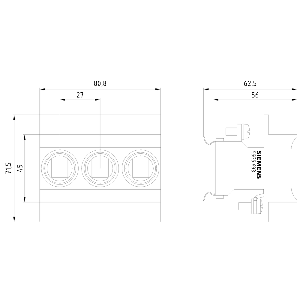 SIEMENS - NEOZED, base portafusibili, D02, a 3 poli, 63 A, Un AC: 400 V, Un DC: 250 V 5SG5693