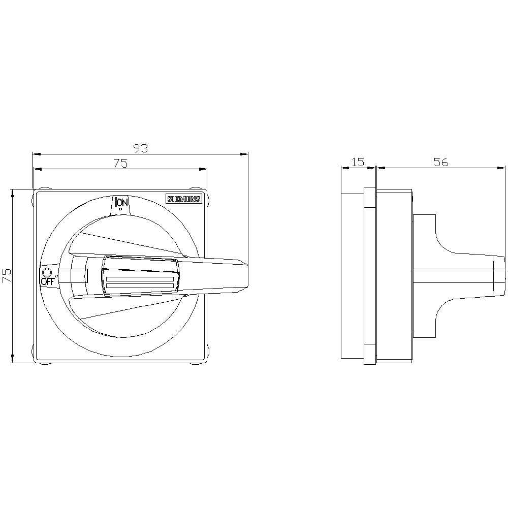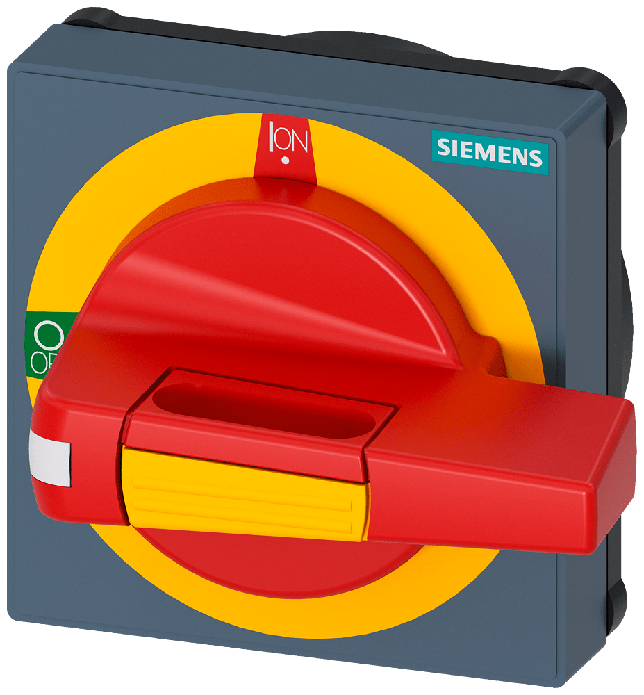 manopola con mostrina frontale emergenza con illuminazione dimensioni 75 x 75, per albero 8x 8, 0-I, operatore grandezza 45mm accessori per 3KD grand. costr. 1 e 2, 3KF grand. costr. 1 Comandi manuali per un comodo utilizzo dell'interruttore automatico scatolato 3VA. Disponibilità come comando rotativo frontale, per porta e parete laterale con diverse possibilità di chiusura a chiave e con interblocco Le manopole sono disponibili nelle varianti standard e ARRESTO DI EMERGENZA, ciascuna con o senza kit di illuminazione. Interruttori automatici scatolati SENTRON 3VA - Un sistema. Per tutte le applicazioni.