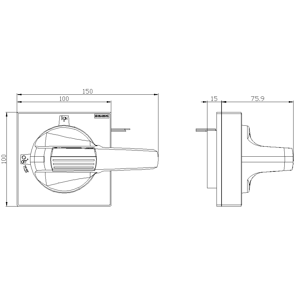 manopola con mostrina frontale standard con illuminazione dimensioni 100 x 100, per albero 8x 8, Test-0-I, operatore grandezza 100mm accessori per 3KD grand. costr. 3, 3KF grand. costr. 2 e 3 Comandi manuali per un comodo utilizzo dell'interruttore automatico scatolato 3VA. Disponibilità come comando rotativo frontale, per porta e parete laterale con diverse possibilità di chiusura a chiave e con interblocco Le manopole sono disponibili nelle varianti standard e ARRESTO DI EMERGENZA, ciascuna con o senza kit di illuminazione. Interruttori automatici scatolati SENTRON 3VA - Un sistema. Per tutte le applicazioni.
