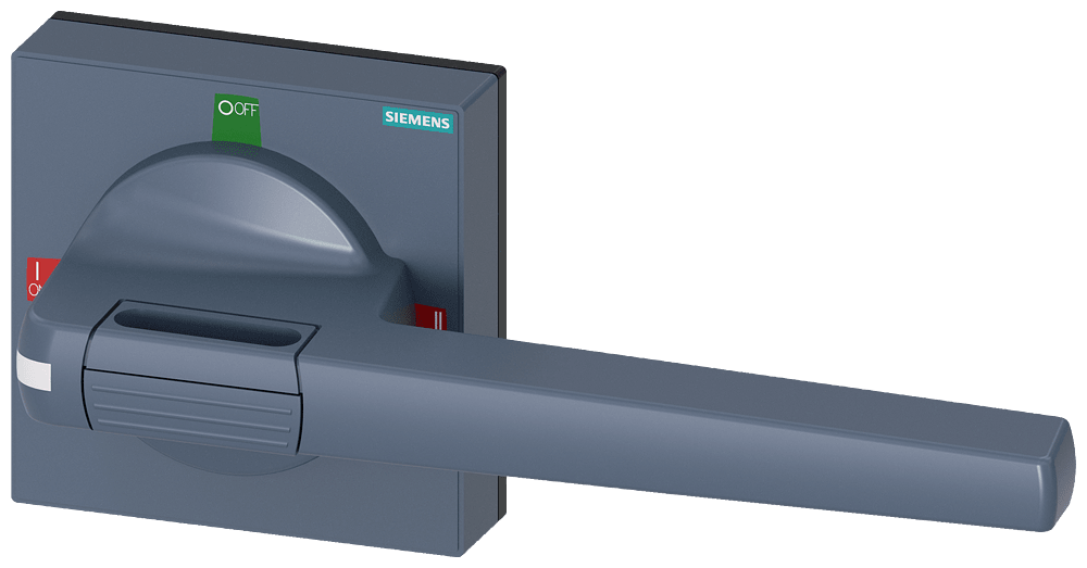 manopola con mostrina frontale standard dimensioni 100 x 100, per albero 12x 12, I-0-II, operatore grandezza 200mm accessori per 3KC0 grand. costr. 5 Comandi manuali per un comodo utilizzo dell'interruttore automatico scatolato 3VA. Disponibilità come comando rotativo frontale, per porta e parete laterale con diverse possibilità di chiusura a chiave e con interblocco Le manopole sono disponibili nelle varianti standard e ARRESTO DI EMERGENZA, ciascuna con o senza kit di illuminazione. Interruttori automatici scatolati SENTRON 3VA - Un sistema. Per tutte le applicazioni.