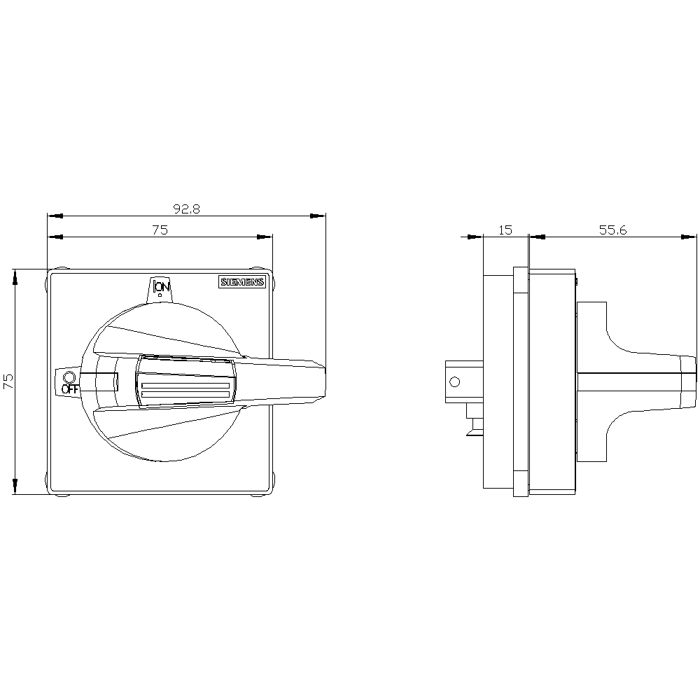 operatore con mostrina frontale standard dimensioni 75x 75, per albero 8x 8, 0-I, operatore grandezza 55mm, 3LD5 UL Comandi manuali per un comodo utilizzo dell'interruttore automatico scatolato 3VA. Disponibilità come comando rotativo frontale, per porta e parete laterale con diverse possibilità di chiusura a chiave e con interblocco Le manopole sono disponibili nelle varianti standard e ARRESTO DI EMERGENZA, ciascuna con o senza kit di illuminazione. Interruttori automatici scatolati SENTRON 3VA - Un sistema. Per tutte le applicazioni.