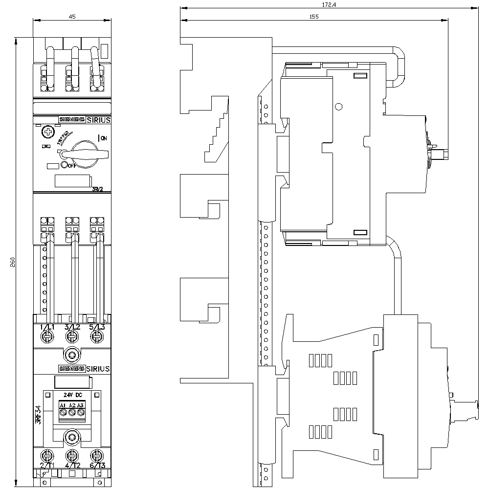 SIEMENS - Partenza, avviatore invertitore, S00, 0,55 ... 0,8 A, DC 24 V, 150 kA 3RA22100HH030SB4
