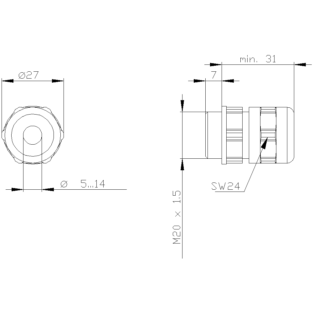 pressacavo a vite M20 x 1,5 elevato grado di protezione IP69, SIEC 60529 per interruttore di sicurezza meccanico con blocco di ritenuta 3SE53..-....-1AG4 Safety is a SIRIUS business.