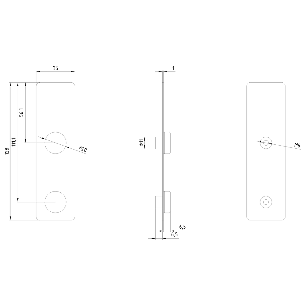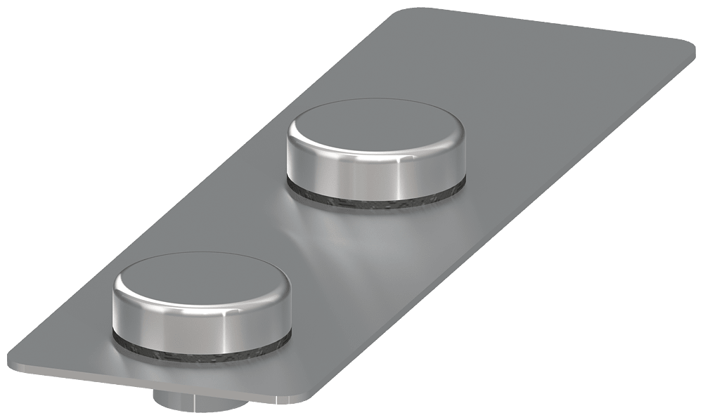 protezione in alluminio come mostrina frontale, accessori per azionatore RFID 3SE64, testine filettate in alluminio con filetto M6 incl. rondelle di gomma. Per l'impiego in porte di vetro e porte in plastica su macchine