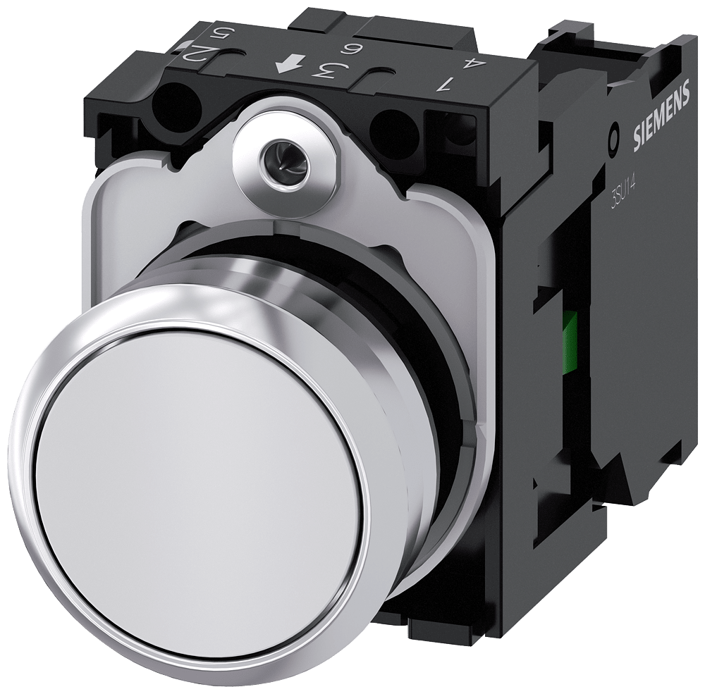 pulsante, 22 mm, rotondo, in metallo, lucido, bianco, bottone, piatto, ad impulso, 1 NO, morsetto a vite Pulsante SIRIUS ACT per la commutazione e il comando di utilizzatori elettrici. Siemens offre, sotto il nome commerciale SIRIUS ACT, un portfolio esclusivo di dispositivi di comando e segnalazione con omologazioni di prodotto per il mercato mondiale in tre moderne serie di design in robusto metallo puro e plastica pregiata.L'innovativo concetto di innesto a scatto semplifica talmente il montaggio che per eseguirlo basta una sola mano e non servono attrezzi speciali. Per i fori di montaggio sono sufficienti semplici fori non scanalati, essendo già integrata una protezione antirotazione al 100 %.Grazie al grado di protezione elevato i robusti apparecchi sono adatti all'impiego industriale e in ambiente esterno. È persino possibile la pulizia con getto ad alta pressione. Né polvere, né oli, né liscivia possono comprometterne il funzionamento affidabile.Oltre che con il cablaggio standard, gli apparecchi possono essere collegati al controllore anche tramite PROFINET, AS-Interface oppure IO-Link. Potete così ridurre il vostro onere di cablaggio, minimizzare le fonti di errore e ottenere maggiore flessibilità.Il configuratore online grafico supporta in modo confortevole la scelta e l'ordinazione di singoli apparecchi, pulsantiere e iscrizioni. È disponibile una documentazione completa (ad es. manuale, dati 3D, schema di collegamento). Esecuzioni fornibili: più colori, luminoso/non luminoso, con/senza iscrizione, comando permanente/ad impulso, diverse altezze di bottone e ghiera. Avvertenza: Apparecchio completo, fornitura incl. supporto e moduli. SIRIUS ACT - Performance in Action nel comando e nella segnalazione. Semplici da montare, altamente performanti, semplicemente perfetti.