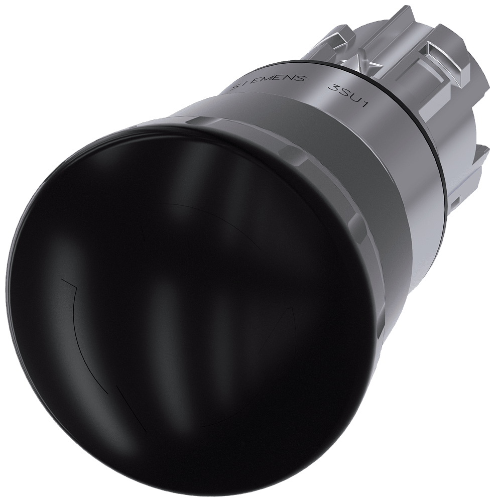 pulsante a fungo, 22 mm, rotondo, in metallo, lucido, nero, 40 mm, permanente con blocco positivo, secondo DIN EN ISO 13850, sblocco a rotazione Pulsante a fungo SIRIUS ACT con operatore grande per l'azionamento comodo con tutta la mano. Siemens offre, sotto il nome commerciale SIRIUS ACT, un portfolio esclusivo di dispositivi di comando e segnalazione con omologazioni di prodotto per il mercato mondiale in tre moderne serie di design in robusto metallo puro e plastica pregiata.L'innovativo concetto di innesto a scatto semplifica talmente il montaggio che per eseguirlo basta una sola mano e non servono attrezzi speciali. Per i fori di montaggio sono sufficienti semplici fori non scanalati, essendo già integrata una protezione antirotazione al 100 %.Grazie al grado di protezione elevato i robusti apparecchi sono adatti all'impiego industriale e in ambiente esterno. È persino possibile la pulizia con getto ad alta pressione. Né polvere, né oli, né liscivia possono comprometterne il funzionamento affidabile.Oltre che con il cablaggio standard, gli apparecchi possono essere collegati al controllore anche tramite PROFINET, AS-Interface oppure IO-Link. Potete così ridurre il vostro onere di cablaggio, minimizzare le fonti di errore e ottenere maggiore flessibilità.Il configuratore online grafico supporta in modo confortevole la scelta e l'ordinazione di singoli apparecchi, pulsantiere e iscrizioni. È disponibile una documentazione completa (ad es. manuale, dati 3D, schema di collegamento). Esecuzioni fornibili: diametro del fungo di 30/40/60 mm, più colori, luminoso/non luminoso, comando permanente/ad impulso, sblocco a trazione/a rotazione. Avvertenza: Apparecchio singolo, supporti e moduli devono essere ordinati separatamente. SIRIUS ACT - Performance in Action nel comando e nella segnalazione. Semplici da montare, altamente performanti, semplicemente perfetti.