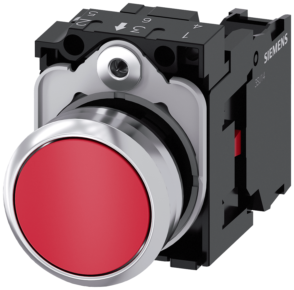 pulsante, 22 mm, rotondo, in metallo, lucido, rosso, bottone, piatto, ad impulso, con supporto, 1 NC, morsetto a vite Pulsante SIRIUS ACT per la commutazione e il comando di utilizzatori elettrici. Siemens offre, sotto il nome commerciale SIRIUS ACT, un portfolio esclusivo di dispositivi di comando e segnalazione con omologazioni di prodotto per il mercato mondiale in tre moderne serie di design in robusto metallo puro e plastica pregiata.L'innovativo concetto di innesto a scatto semplifica talmente il montaggio che per eseguirlo basta una sola mano e non servono attrezzi speciali. Per i fori di montaggio sono sufficienti semplici fori non scanalati, essendo già integrata una protezione antirotazione al 100 %.Grazie al grado di protezione elevato i robusti apparecchi sono adatti all'impiego industriale e in ambiente esterno. È persino possibile la pulizia con getto ad alta pressione. Né polvere, né oli, né liscivia possono comprometterne il funzionamento affidabile.Oltre che con il cablaggio standard, gli apparecchi possono essere collegati al controllore anche tramite PROFINET, AS-Interface oppure IO-Link. Potete così ridurre il vostro onere di cablaggio, minimizzare le fonti di errore e ottenere maggiore flessibilità.Il configuratore online grafico supporta in modo confortevole la scelta e l'ordinazione di singoli apparecchi, pulsantiere e iscrizioni. È disponibile una documentazione completa (ad es. manuale, dati 3D, schema di collegamento). Esecuzioni fornibili: più colori, luminoso/non luminoso, con/senza iscrizione, comando permanente/ad impulso, diverse altezze di bottone e ghiera. Avvertenza: Apparecchio completo, fornitura incl. supporto e moduli. SIRIUS ACT - Performance in Action nel comando e nella segnalazione. Semplici da montare, altamente performanti, semplicemente perfetti.