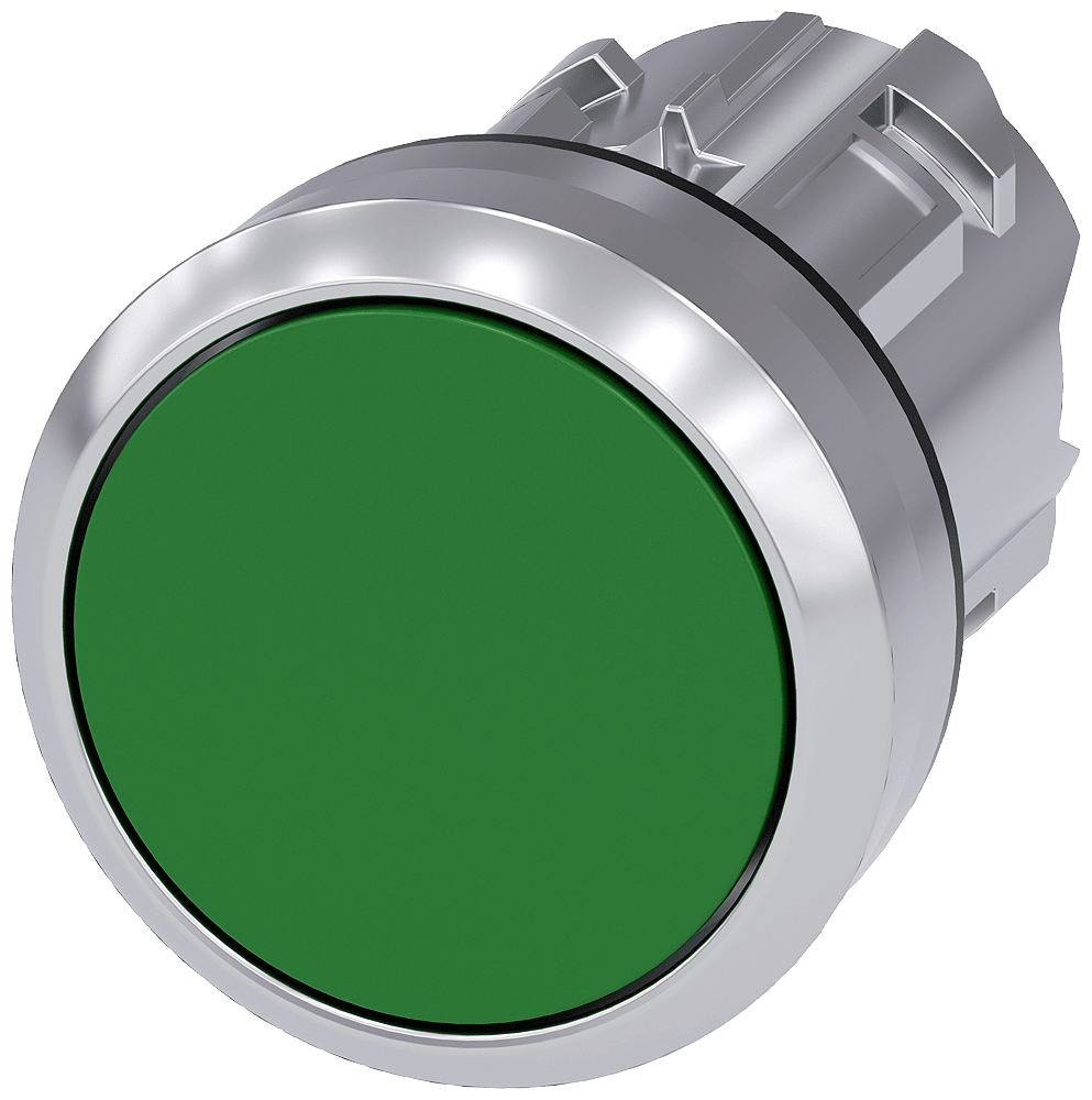 pulsante, 22 mm, rotondo, in metallo, lucido, verde, bottone, piatto, permanente, sblocco a pressione Pulsante SIRIUS ACT per la commutazione e il comando di utilizzatori elettrici. Siemens offre, sotto il nome commerciale SIRIUS ACT, un portfolio esclusivo di dispositivi di comando e segnalazione con omologazioni di prodotto per il mercato mondiale in tre moderne serie di design in robusto metallo puro e plastica pregiata.L'innovativo concetto di innesto a scatto semplifica talmente il montaggio che per eseguirlo basta una sola mano e non servono attrezzi speciali. Per i fori di montaggio sono sufficienti semplici fori non scanalati, essendo già integrata una protezione antirotazione al 100 %.Grazie al grado di protezione elevato i robusti apparecchi sono adatti all'impiego industriale e in ambiente esterno. È persino possibile la pulizia con getto ad alta pressione. Né polvere, né oli, né liscivia possono comprometterne il funzionamento affidabile.Oltre che con il cablaggio standard, gli apparecchi possono essere collegati al controllore anche tramite PROFINET, AS-Interface oppure IO-Link. Potete così ridurre il vostro onere di cablaggio, minimizzare le fonti di errore e ottenere maggiore flessibilità.Il configuratore online grafico supporta in modo confortevole la scelta e l'ordinazione di singoli apparecchi, pulsantiere e iscrizioni. È disponibile una documentazione completa (ad es. manuale, dati 3D, schema di collegamento). Esecuzioni fornibili: più colori, luminoso/non luminoso, con/senza iscrizione, comando permanente/ad impulso, diverse altezze di bottone e ghiera. Avvertenza: Apparecchio singolo, supporti e moduli devono essere ordinati separatamente. SIRIUS ACT - Performance in Action nel comando e nella segnalazione. Semplici da montare, altamente performanti, semplicemente perfetti.