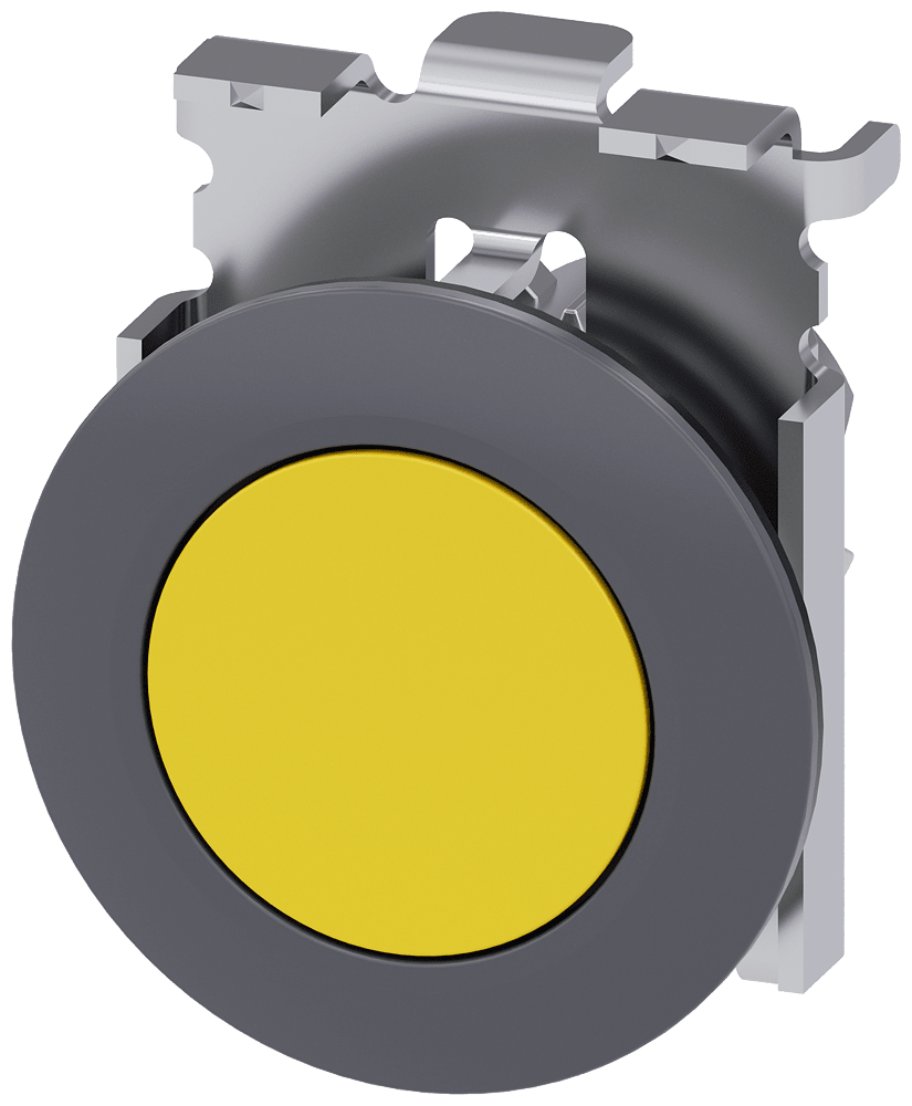 pulsante, 30 mm, rotondo, in metallo, opaco, giallo, anello frontale per montaggio piatto, ad impulso Pulsante SIRIUS ACT per la commutazione e il comando di utilizzatori elettrici. Siemens offre, sotto il nome commerciale SIRIUS ACT, un portfolio esclusivo di dispositivi di comando e segnalazione con omologazioni di prodotto per il mercato mondiale in tre moderne serie di design in robusto metallo puro e plastica pregiata.L'innovativo concetto di innesto a scatto semplifica talmente il montaggio che per eseguirlo basta una sola mano e non servono attrezzi speciali. Per i fori di montaggio sono sufficienti semplici fori non scanalati, essendo già integrata una protezione antirotazione al 100 %.Grazie al grado di protezione elevato i robusti apparecchi sono adatti all'impiego industriale e in ambiente esterno. È persino possibile la pulizia con getto ad alta pressione. Né polvere, né oli, né liscivia possono comprometterne il funzionamento affidabile.Oltre che con il cablaggio standard, gli apparecchi possono essere collegati al controllore anche tramite PROFINET, AS-Interface oppure IO-Link. Potete così ridurre il vostro onere di cablaggio, minimizzare le fonti di errore e ottenere maggiore flessibilità.Il configuratore online grafico supporta in modo confortevole la scelta e l'ordinazione di singoli apparecchi, pulsantiere e iscrizioni. È disponibile una documentazione completa (ad es. manuale, dati 3D, schema di collegamento). Esecuzioni fornibili: più colori, luminoso/non luminoso, con/senza iscrizione, comando permanente/ad impulso, diverse altezze di bottone e ghiera. Avvertenza: Apparecchio singolo, supporti e moduli devono essere ordinati separatamente. SIRIUS ACT - Performance in Action nel comando e nella segnalazione. Semplici da montare, altamente performanti, semplicemente perfetti.