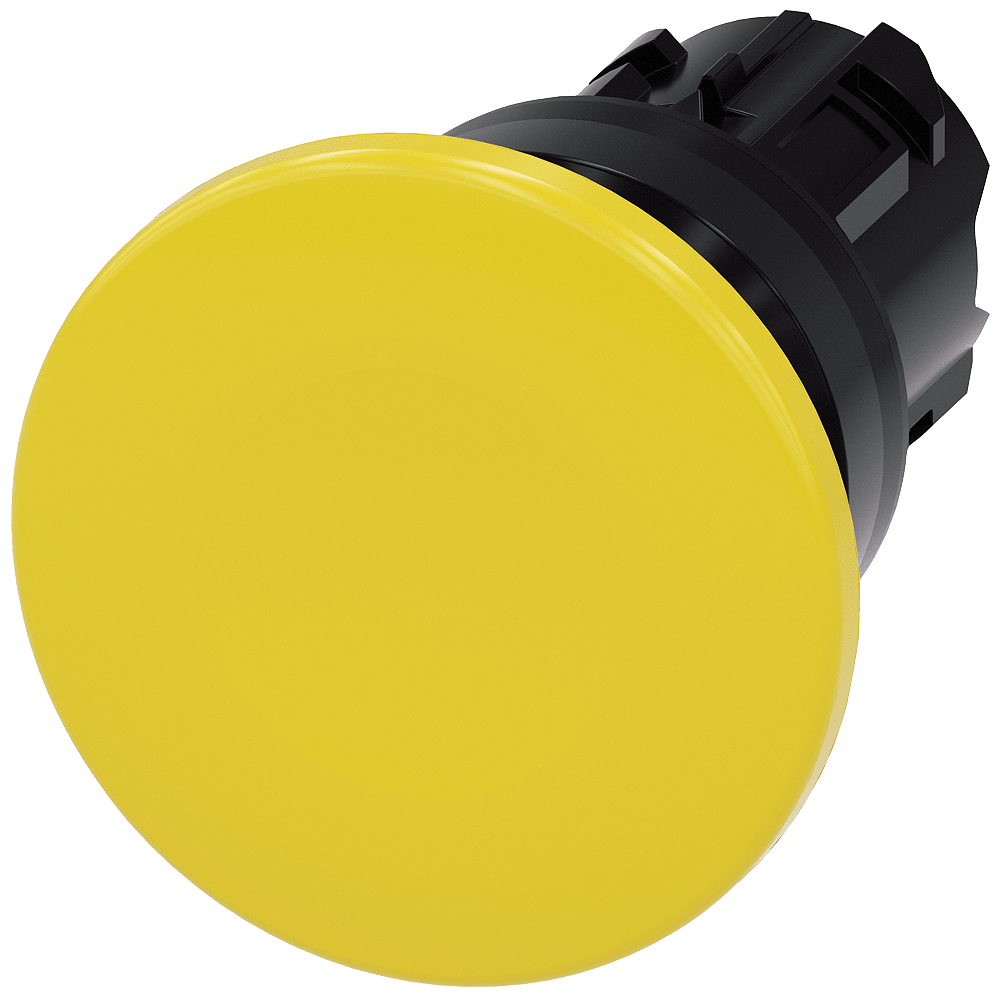 pulsante a fungo, 22 mm, rotondo, in plastica, giallo, 40 mm, ad impulso Pulsante a fungo SIRIUS ACT con operatore grande per l'azionamento comodo con tutta la mano. Siemens offre, sotto il nome commerciale SIRIUS ACT, un portfolio esclusivo di dispositivi di comando e segnalazione con omologazioni di prodotto per il mercato mondiale in tre moderne serie di design in robusto metallo puro e plastica pregiata.L'innovativo concetto di innesto a scatto semplifica talmente il montaggio che per eseguirlo basta una sola mano e non servono attrezzi speciali. Per i fori di montaggio sono sufficienti semplici fori non scanalati, essendo già integrata una protezione antirotazione al 100 %.Grazie al grado di protezione elevato i robusti apparecchi sono adatti all'impiego industriale e in ambiente esterno. È persino possibile la pulizia con getto ad alta pressione. Né polvere, né oli, né liscivia possono comprometterne il funzionamento affidabile.Oltre che con il cablaggio standard, gli apparecchi possono essere collegati al controllore anche tramite PROFINET, AS-Interface oppure IO-Link. Potete così ridurre il vostro onere di cablaggio, minimizzare le fonti di errore e ottenere maggiore flessibilità.Il configuratore online grafico supporta in modo confortevole la scelta e l'ordinazione di singoli apparecchi, pulsantiere e iscrizioni. È disponibile una documentazione completa (ad es. manuale, dati 3D, schema di collegamento). Esecuzioni fornibili: diametro del fungo di 30/40/60 mm, più colori, luminoso/non luminoso, comando permanente/ad impulso, sblocco a trazione/a rotazione. Avvertenza: Apparecchio singolo, supporti e moduli devono essere ordinati separatamente. SIRIUS ACT - Performance in Action nel comando e nella segnalazione. Semplici da montare, altamente performanti, semplicemente perfetti.