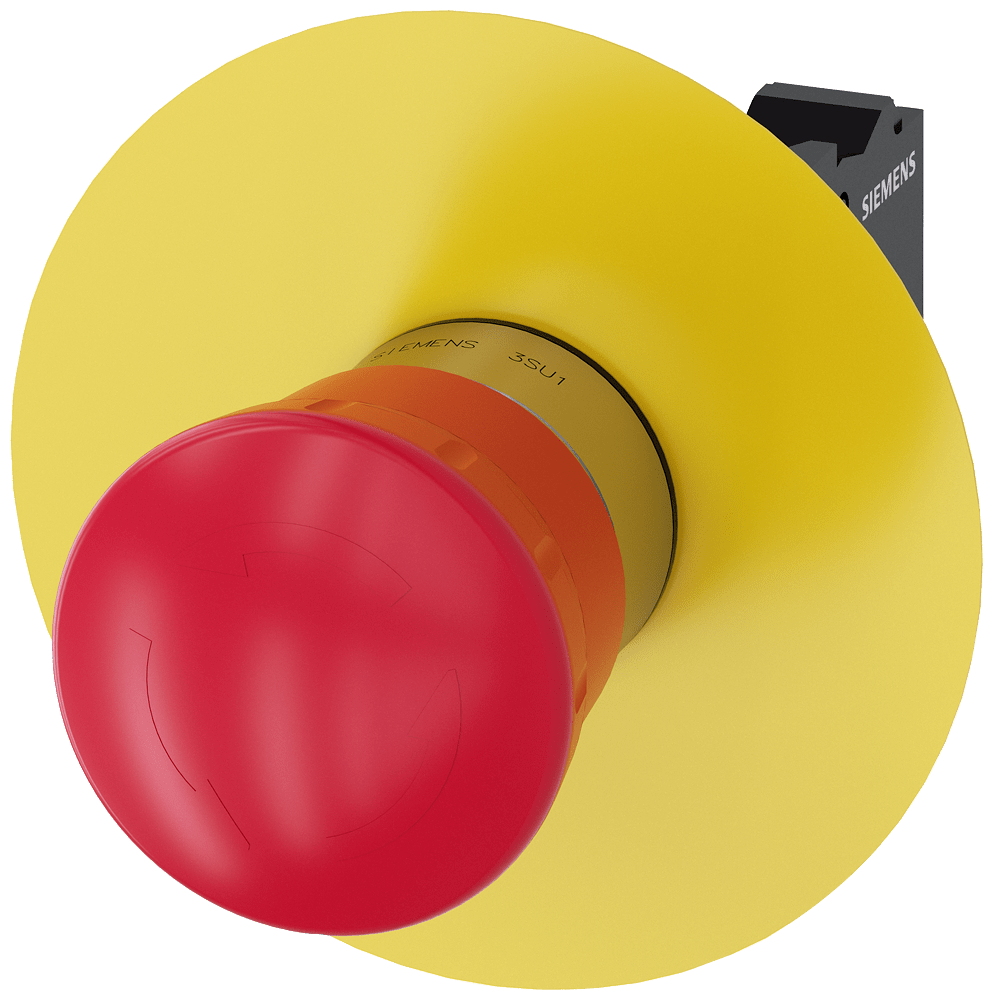 pulsante a fungo di ARRESTO DI EMERGENZA, 22 mm, rotondo, in metallo, lucido, rosso, 40 mm, permanente con blocco positivo, secondo EN ISO 13850, sblocco a rotazione, con disco targhetta giallo, senza iscrizione, con supporto, 1 NC, morsetti a molla, fissaggio su piastra frontale Pulsante a fungo di ARRESTO DI EMERGENZA SIRIUS ACT secondo EN ISO 13850 per il comando di applicazioni relative alla sicurezza a prova di manomissione. Siemens offre, sotto il nome commerciale SIRIUS ACT, un portfolio esclusivo di dispositivi di comando e segnalazione con omologazioni di prodotto per il mercato mondiale in tre moderne serie di design in robusto metallo puro e plastica pregiata.L'innovativo concetto di innesto a scatto semplifica talmente il montaggio che per eseguirlo basta una sola mano e non servono attrezzi speciali. Per i fori di montaggio sono sufficienti semplici fori non scanalati, essendo già integrata una protezione antirotazione al 100 %.Grazie al grado di protezione elevato i robusti apparecchi sono adatti all'impiego industriale e in ambiente esterno. È persino possibile la pulizia con getto ad alta pressione. Né polvere, né oli, né liscivia possono comprometterne il funzionamento affidabile.Oltre che con il cablaggio standard, gli apparecchi possono essere collegati al controllore anche tramite PROFINET, AS-Interface oppure IO-Link. Potete così ridurre il vostro onere di cablaggio, minimizzare le fonti di errore e ottenere maggiore flessibilità.Il configuratore online grafico supporta in modo confortevole la scelta e l'ordinazione di singoli apparecchi, pulsantiere e iscrizioni. È disponibile una documentazione completa (ad es. manuale, dati 3D, schema di collegamento). Esecuzioni fornibili: diametro del fungo di 30/40/60 mm, luminoso/non luminoso, sblocco a trazione/a rotazione/a chiave. Avvertenza: Apparecchio completo, fornitura incl. supporto e moduli. SIRIUS ACT - Performance in Action nel comando e nella segnalazione. Semplici da montare, altamente performanti, semplicemente perfetti.
