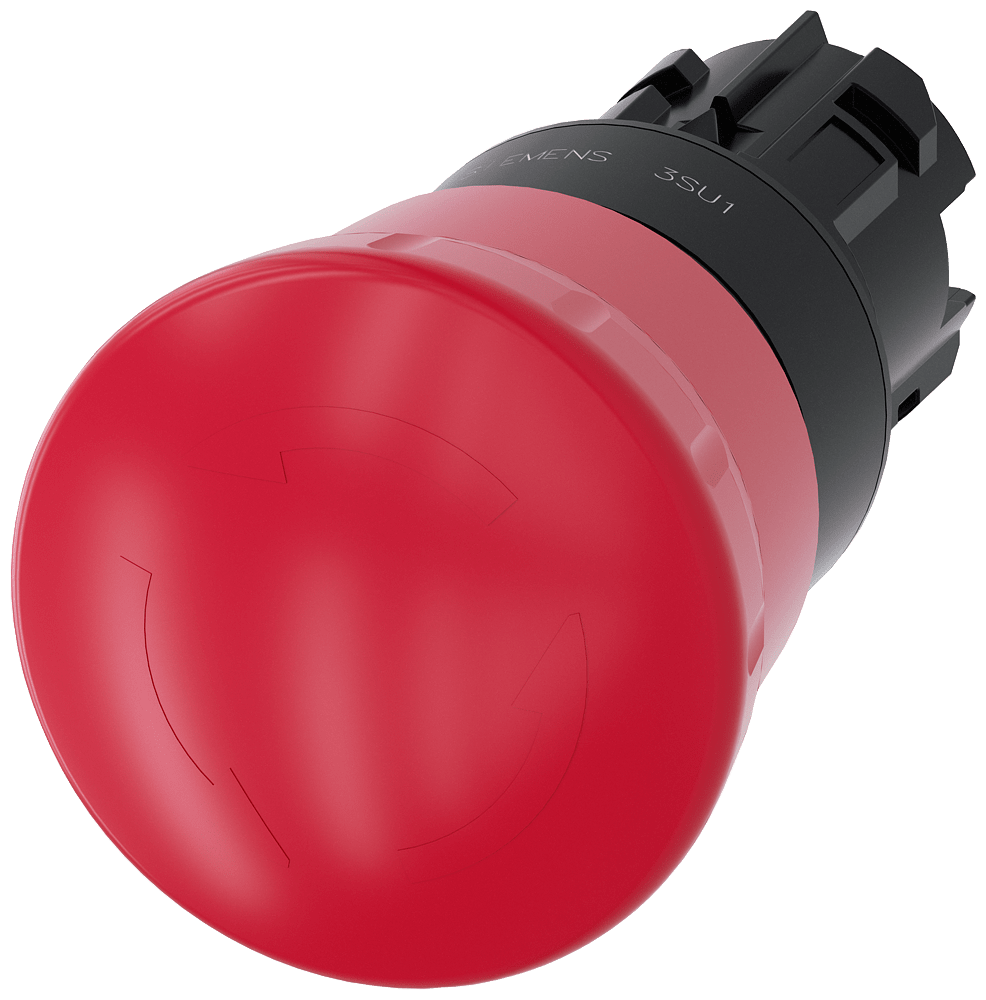 pulsante a fungo di ARRESTO DI EMERGENZA, 22 mm, rotondo, in plastica, rosso, 40 mm, permanente con blocco positivo, secondo DIN EN ISO 13850, sblocco a rotazione Pulsante a fungo di ARRESTO DI EMERGENZA SIRIUS ACT secondo EN ISO 13850 per il comando di applicazioni relative alla sicurezza a prova di manomissione. Siemens offre, sotto il nome commerciale SIRIUS ACT, un portfolio esclusivo di dispositivi di comando e segnalazione con omologazioni di prodotto per il mercato mondiale in tre moderne serie di design in robusto metallo puro e plastica pregiata.L'innovativo concetto di innesto a scatto semplifica talmente il montaggio che per eseguirlo basta una sola mano e non servono attrezzi speciali. Per i fori di montaggio sono sufficienti semplici fori non scanalati, essendo già integrata una protezione antirotazione al 100 %.Grazie al grado di protezione elevato i robusti apparecchi sono adatti all'impiego industriale e in ambiente esterno. È persino possibile la pulizia con getto ad alta pressione. Né polvere, né oli, né liscivia possono comprometterne il funzionamento affidabile.Oltre che con il cablaggio standard, gli apparecchi possono essere collegati al controllore anche tramite PROFINET, AS-Interface oppure IO-Link. Potete così ridurre il vostro onere di cablaggio, minimizzare le fonti di errore e ottenere maggiore flessibilità.Il configuratore online grafico supporta in modo confortevole la scelta e l'ordinazione di singoli apparecchi, pulsantiere e iscrizioni. È disponibile una documentazione completa (ad es. manuale, dati 3D, schema di collegamento). Esecuzioni fornibili: diametro del fungo di 30/40/60 mm, luminoso/non luminoso, sblocco a trazione/a rotazione/a chiave. Avvertenza: Apparecchio singolo, supporti e moduli devono essere ordinati separatamente. SIRIUS ACT - Performance in Action nel comando e nella segnalazione. Semplici da montare, altamente performanti, semplicemente perfetti.