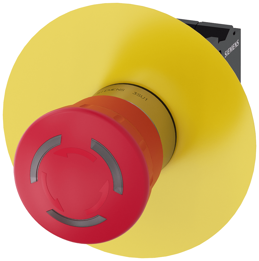 pulsante a fungo di ARRESTO DI EMERGENZA, illuminabile, 22 mm, rotondo, in metallo, lucido, rosso, 40 mm, permanente con blocco positivo, secondo EN ISO 13850, sblocco a rotazione, con disco targhetta giallo, senza iscrizione, con supporto, 1 NC, 1 NC, LED 24 V rosso, morsetti a molla, fissaggio su piastra frontale Pulsante a fungo di ARRESTO DI EMERGENZA SIRIUS ACT secondo EN ISO 13850 per il comando di applicazioni relative alla sicurezza a prova di manomissione. Siemens offre, sotto il nome commerciale SIRIUS ACT, un portfolio esclusivo di dispositivi di comando e segnalazione con omologazioni di prodotto per il mercato mondiale in tre moderne serie di design in robusto metallo puro e plastica pregiata.L'innovativo concetto di innesto a scatto semplifica talmente il montaggio che per eseguirlo basta una sola mano e non servono attrezzi speciali. Per i fori di montaggio sono sufficienti semplici fori non scanalati, essendo già integrata una protezione antirotazione al 100 %.Grazie al grado di protezione elevato i robusti apparecchi sono adatti all'impiego industriale e in ambiente esterno. È persino possibile la pulizia con getto ad alta pressione. Né polvere, né oli, né liscivia possono comprometterne il funzionamento affidabile.Oltre che con il cablaggio standard, gli apparecchi possono essere collegati al controllore anche tramite PROFINET, AS-Interface oppure IO-Link. Potete così ridurre il vostro onere di cablaggio, minimizzare le fonti di errore e ottenere maggiore flessibilità.Il configuratore online grafico supporta in modo confortevole la scelta e l'ordinazione di singoli apparecchi, pulsantiere e iscrizioni. È disponibile una documentazione completa (ad es. manuale, dati 3D, schema di collegamento). Esecuzioni fornibili: diametro del fungo di 30/40/60 mm, luminoso/non luminoso, sblocco a trazione/a rotazione/a chiave. Avvertenza: Apparecchio completo, fornitura incl. supporto e moduli. SIRIUS ACT - Performance in Action nel comando e nella segnalazione. Semplici da montare, altamente performanti, semplicemente perfetti.