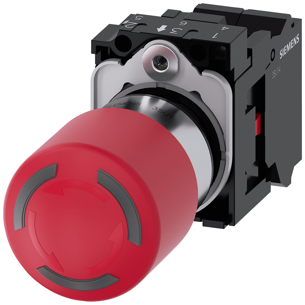 pulsante a fungo di ARRESTO DI EMERGENZA, illuminabile, 22 mm, rotondo, in metallo, lucido, rosso, 30 mm, permanente con blocco positivo, secondo EN ISO 13850, sblocco a rotazione, disco targhetta per ARRESTO DI EMERGENZA, giallo, senza iscrizione, con supporto, 1 NC, modulo LED 24 V rosso, morsetti a molla, fissaggio su piastra frontale Pulsante a fungo di ARRESTO DI EMERGENZA SIRIUS ACT secondo EN ISO 13850 per il comando di applicazioni relative alla sicurezza a prova di manomissione. Siemens offre, sotto il nome commerciale SIRIUS ACT, un portfolio esclusivo di dispositivi di comando e segnalazione con omologazioni di prodotto per il mercato mondiale in tre moderne serie di design in robusto metallo puro e plastica pregiata.L'innovativo concetto di innesto a scatto semplifica talmente il montaggio che per eseguirlo basta una sola mano e non servono attrezzi speciali. Per i fori di montaggio sono sufficienti semplici fori non scanalati, essendo già integrata una protezione antirotazione al 100 %.Grazie al grado di protezione elevato i robusti apparecchi sono adatti all'impiego industriale e in ambiente esterno. È persino possibile la pulizia con getto ad alta pressione. Né polvere, né oli, né liscivia possono comprometterne il funzionamento affidabile.Oltre che con il cablaggio standard, gli apparecchi possono essere collegati al controllore anche tramite PROFINET, AS-Interface oppure IO-Link. Potete così ridurre il vostro onere di cablaggio, minimizzare le fonti di errore e ottenere maggiore flessibilità.Il configuratore online grafico supporta in modo confortevole la scelta e l'ordinazione di singoli apparecchi, pulsantiere e iscrizioni. È disponibile una documentazione completa (ad es. manuale, dati 3D, schema di collegamento). Esecuzioni fornibili: diametro del fungo di 30/40/60 mm, luminoso/non luminoso, sblocco a trazione/a rotazione/a chiave. Avvertenza: Apparecchio completo, fornitura incl. supporto e moduli. SIRIUS ACT - Performance in Action nel comando e nella segnalazione. Semplici da montare, altamente performanti, semplicemente perfetti.