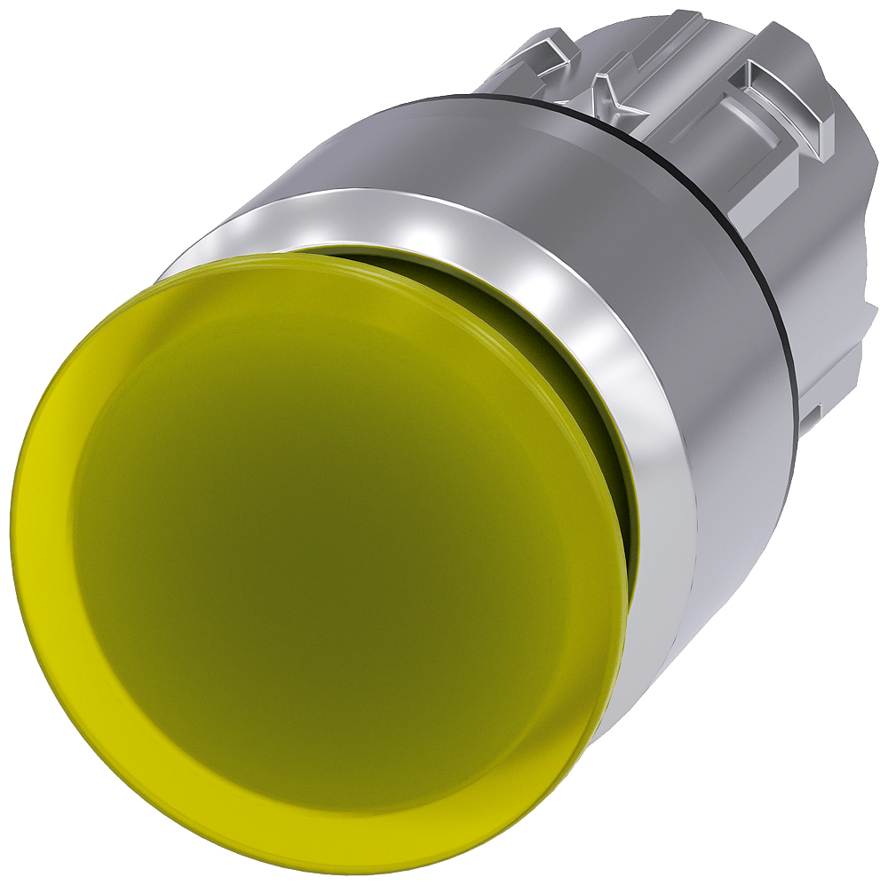 pulsante a fungo luminoso, 22 mm, rotondo, in metallo, lucido, giallo, 30 mm, permanente, sblocco a trazione Pulsante a fungo SIRIUS ACT con operatore grande per l'azionamento comodo con tutta la mano. Siemens offre, sotto il nome commerciale SIRIUS ACT, un portfolio esclusivo di dispositivi di comando e segnalazione con omologazioni di prodotto per il mercato mondiale in tre moderne serie di design in robusto metallo puro e plastica pregiata.L'innovativo concetto di innesto a scatto semplifica talmente il montaggio che per eseguirlo basta una sola mano e non servono attrezzi speciali. Per i fori di montaggio sono sufficienti semplici fori non scanalati, essendo già integrata una protezione antirotazione al 100 %.Grazie al grado di protezione elevato i robusti apparecchi sono adatti all'impiego industriale e in ambiente esterno. È persino possibile la pulizia con getto ad alta pressione. Né polvere, né oli, né liscivia possono comprometterne il funzionamento affidabile.Oltre che con il cablaggio standard, gli apparecchi possono essere collegati al controllore anche tramite PROFINET, AS-Interface oppure IO-Link. Potete così ridurre il vostro onere di cablaggio, minimizzare le fonti di errore e ottenere maggiore flessibilità.Il configuratore online grafico supporta in modo confortevole la scelta e l'ordinazione di singoli apparecchi, pulsantiere e iscrizioni. È disponibile una documentazione completa (ad es. manuale, dati 3D, schema di collegamento). Esecuzioni fornibili: diametro del fungo di 30/40/60 mm, più colori, luminoso/non luminoso, comando permanente/ad impulso, sblocco a trazione/a rotazione. Avvertenza: Apparecchio singolo, supporti e moduli devono essere ordinati separatamente. SIRIUS ACT - Performance in Action nel comando e nella segnalazione. Semplici da montare, altamente performanti, semplicemente perfetti.
