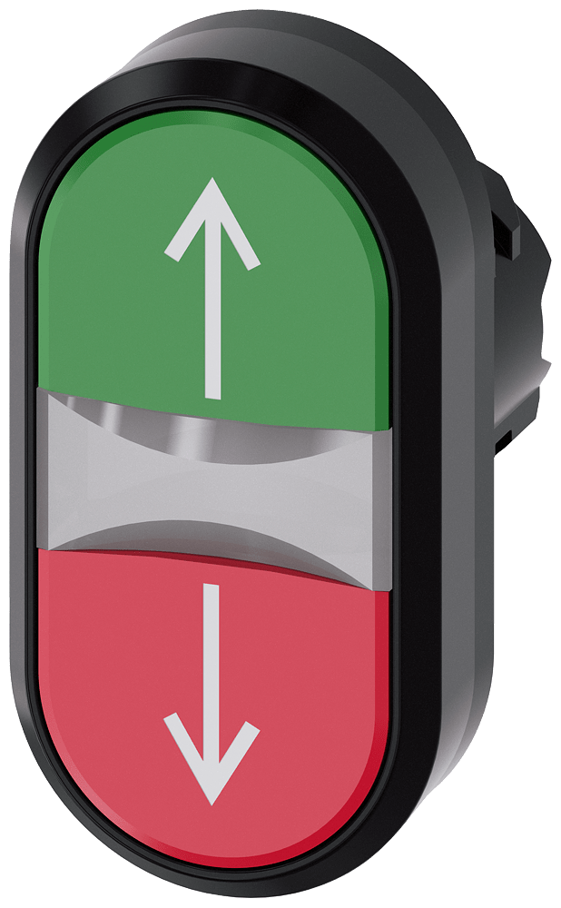 pulsante doppio luminoso, 22 mm, rotondo, in plastica, verde: freccia su, rosso: freccia giù, bottoni, piatto Pulsante doppio SIRIUS ACT per la realizzazione di due funzioni di commutazione ad impulso in un punto di comando. Siemens offre, sotto il nome commerciale SIRIUS ACT, un portfolio esclusivo di dispositivi di comando e segnalazione con omologazioni di prodotto per il mercato mondiale in tre moderne serie di design in robusto metallo puro e plastica pregiata.L'innovativo concetto di innesto a scatto semplifica talmente il montaggio che per eseguirlo basta una sola mano e non servono attrezzi speciali. Peri fori di montaggio sono sufficienti semplici fori non scanalati, essendo già integrata una protezione antirotazione al 100 %.Grazie al grado di protezione elevato i robusti apparecchi sono adatti all'impiego industriale e in ambiente esterno. È persino possibile la pulizia con getto ad alta pressione. Né polvere, né oli, né liscivia possono comprometterne il funzionamento affidabile.Oltre che con il cablaggio standard, gli apparecchi possono essere collegati al controllore anche tramite PROFINET, AS-Interface oppure IO-Link. Potete così ridurre il vostro onere di cablaggio, minimizzare le fonti di errore e ottenere maggiore flessibilità.Il configuratore online grafico supporta in modo confortevole la scelta e l'ordinazione di singoli apparecchi, pulsantiere e iscrizioni. È disponibile una documentazione completa (ad es. manuale, dati 3D, schema di collegamento). Esecuzioni fornibili: diverse combinazioni di colori, luminoso/non luminoso, con/senza iscrizione, diverse altezze di bottone. Avvertenza: Apparecchio singolo, supporti e moduli devono essere ordinati separatamente. SIRIUS ACT - Performance in Action nel comando e nella segnalazione. Semplici da montare, altamente performanti, semplicemente perfetti.