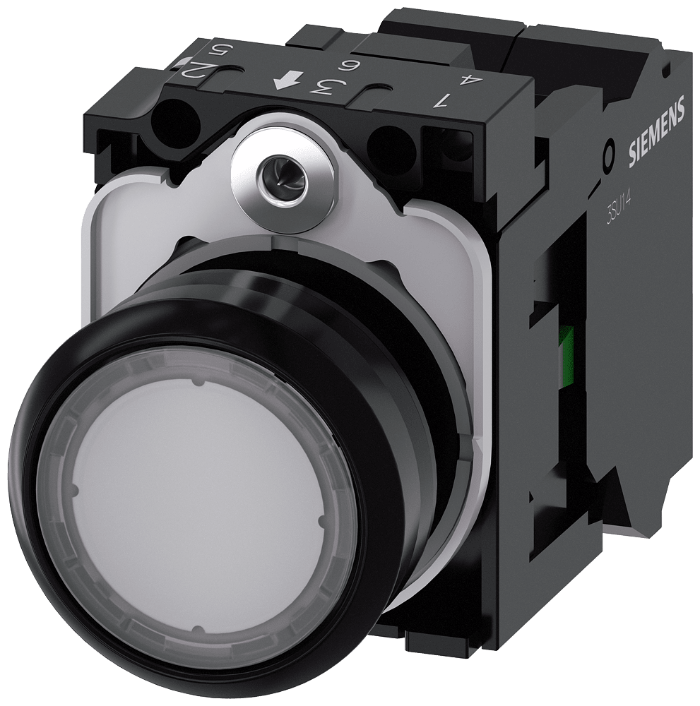 pulsante luminoso, 22 mm, rotondo, in plastica, trasparente, bottone, piatto, ad impulso, con supporto, 1 NO, modulo LED con LED integrato AC 110 V, morsetto a molla Pulsanti luminosi SIRIUS ACT per la commutazione e il comando di utilizzatori elettrici. Siemens offre, sotto il nome commerciale SIRIUS ACT, un portfolio esclusivo di dispositivi di comando e segnalazione con omologazioni di prodotto per il mercato mondiale in tre moderne serie di design in robusto metallo puro e plastica pregiata.L'innovativo concetto di innesto a scatto semplifica talmente il montaggio che per eseguirlo basta una sola mano e non servono attrezzi speciali. Per i fori di montaggio sono sufficienti semplici fori non scanalati, essendo già integrata una protezione antirotazione al 100 %.Grazie al grado di protezione elevato i robusti apparecchi sono adatti all'impiego industriale e in ambiente esterno. È persino possibile la pulizia con getto ad alta pressione. Né polvere, né oli, né liscivia possono comprometterne il funzionamento affidabile.Oltre che con il cablaggio standard, gli apparecchi possono essere collegati al controllore anche tramite PROFINET, AS-Interface oppure IO-Link. Potete così ridurre il vostro onere di cablaggio, minimizzare le fonti di errore e ottenere maggiore flessibilità.Il configuratore online grafico supporta in modo confortevole la scelta e l'ordinazione di singoli apparecchi, pulsantiere e iscrizioni. È disponibile una documentazione completa (ad es. manuale, dati 3D, schema di collegamento). Esecuzioni fornibili: più colori, luminoso/non luminoso, con/senza iscrizione, comando permanente/ad impulso, diverse altezze di bottone e ghiera. Avvertenza: Apparecchio completo, fornitura incl. supporto e moduli. SIRIUS ACT - Performance in Action nel comando e nella segnalazione. Semplici da montare, altamente performanti, semplicemente perfetti.