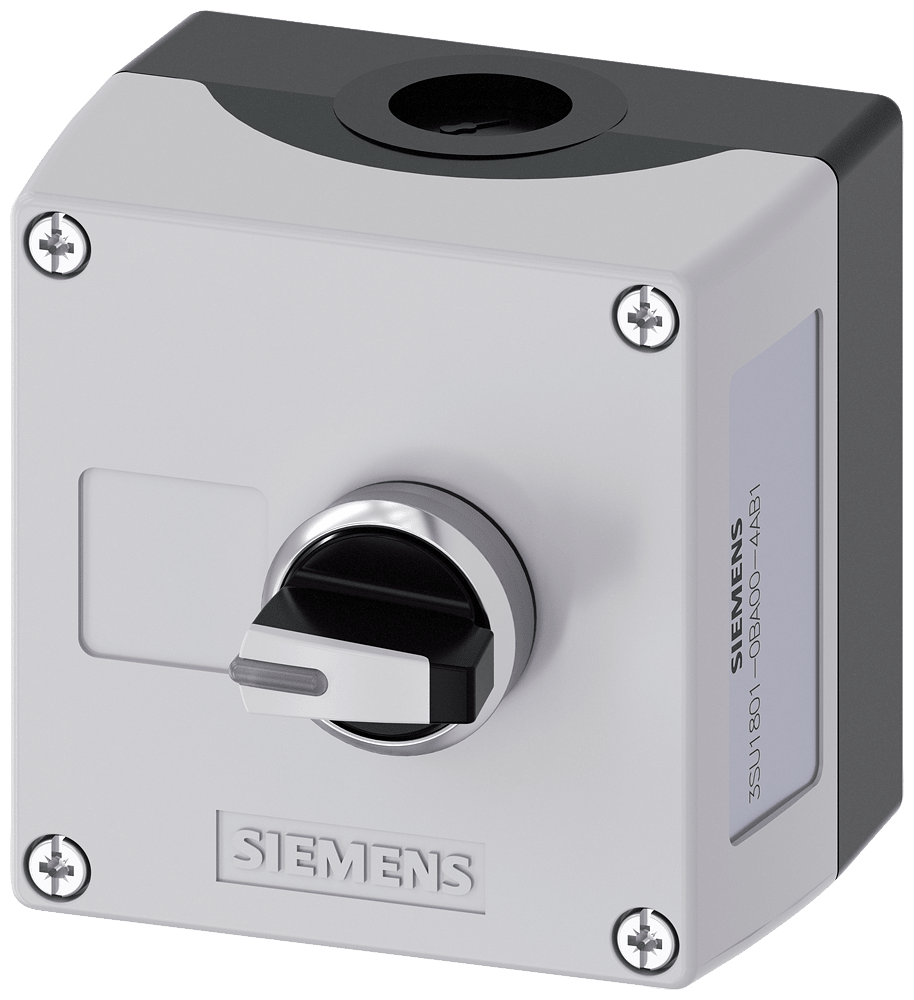 pulsantiera per dispositivi di comando 22 mm, rotondo, materiale della pulsantiera plastica, parte superiore della pulsantiera grigia, 1 posto di comando, A = selettore, nero, in metallo, 3 posizioni di commutazione, ad impulso, 1 NO, 1 NO, morsetti a molla, fissaggio sulla base di fondo, morsetto di supporto, rientranza per targhetta, in alto e in basso rispettivamente 1xM20 Custodie SIRIUS ACT per il montaggio dei dispositivi di comando e segnalazione da 22,5 mm in caso di installazione spazialmente separata di unità di comando e quadri elettrici. Siemens offre, sotto il nome commerciale SIRIUS ACT, un portfolio esclusivo di dispositivi di comando e segnalazione con omologazioni di prodotto per il mercato mondiale in tre moderne serie di design in robusto metallo puro e plastica pregiata.L'innovativo concetto di innesto a scatto semplifica talmente il montaggio che per eseguirlo basta una sola mano e non servono attrezzi speciali. Per i fori di montaggio sono sufficienti semplici fori non scanalati, essendo già integrata una protezione antirotazione al 100 %.Grazie al grado di protezione elevato i robusti apparecchi sono adatti all'impiego industriale e in ambiente esterno. È persino possibile la pulizia con getto ad alta pressione. Né polvere, né oli, né liscivia possono comprometterne il funzionamento affidabile.Oltre che con il cablaggio standard, gli apparecchi possono essere collegati al controllore anche tramite PROFINET, AS-Interface oppure IO-Link. Potete così ridurre il vostro onere di cablaggio, minimizzare le fonti di errore e ottenere maggiore flessibilità.Il configuratore online grafico supporta in modo confortevole la scelta e l'ordinazione di singoli apparecchi, pulsantiere e iscrizioni. È disponibile una documentazione completa (ad es. manuale, dati 3D, schema di collegamento). Esecuzioni fornibili: giallo/grigio, plastica/metallo, 1-6 punti di comando, pulsantiera equipaggiabile/equipaggiata, a scelta con collegamento AS-Interface. SIRIUS ACT - Performance in Action nel comando e nella segnalazione. Semplici da montare, altamente performanti, semplicemente perfetti.