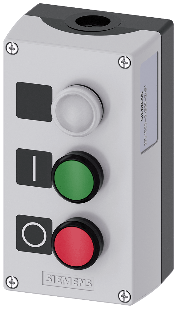 pulsantiera per dispositivi di comando, 22 mm, rotondo, materiale della pulsantiera plastica, parte superiore della pulsantiera grigia, 3 punti di comando plastica, C=indicatore luminoso trasparente, targhetta LED 24 V, morsetti a vite, B=pulsante verde, targhetta: I, 1 NO, morsetti a vite, A=pulsante rosso, targhetta: O, 1 NC, morsetti a vite, fissaggio sulla base di fondo, in alto e in basso risp. 1xM20, targhette allegate Custodie SIRIUS ACT per il montaggio dei dispositivi di comando e segnalazione da 22,5 mm in caso di installazione spazialmente separata di unità di comando e quadri elettrici. Siemens offre, sotto il nome commerciale SIRIUS ACT, un portfolio esclusivo di dispositivi di comando e segnalazione con omologazioni di prodotto per il mercato mondiale in tre moderne serie di design in robusto metallo puro e plastica pregiata.L'innovativo concetto di innesto a scatto semplifica talmente il montaggio che per eseguirlo basta una sola mano e non servono attrezzi speciali. Per i fori di montaggio sono sufficienti semplici fori non scanalati, essendo già integrata una protezione antirotazione al 100 %.Grazie al grado di protezione elevato i robusti apparecchi sono adatti all'impiego industriale e in ambiente esterno. È persino possibile la pulizia con getto ad alta pressione. Né polvere, né oli, né liscivia possono comprometterne il funzionamento affidabile.Oltre che con il cablaggio standard, gli apparecchi possono essere collegati al controllore anche tramite PROFINET, AS-Interface oppure IO-Link. Potete così ridurre il vostro onere di cablaggio, minimizzare le fonti di errore e ottenere maggiore flessibilità.Il configuratore online grafico supporta in modo confortevole la scelta e l'ordinazione di singoli apparecchi, pulsantiere e iscrizioni. È disponibile una documentazione completa (ad es. manuale, dati 3D, schema di collegamento). Esecuzioni fornibili: giallo/grigio, plastica/metallo, 1-6 punti di comando, pulsantiera equipaggiabile/equipaggiata, a scelta con collegamento AS-Interface. SIRIUS ACT - Performance in Action nel comando e nella segnalazione. Semplici da montare, altamente performanti, semplicemente perfetti.