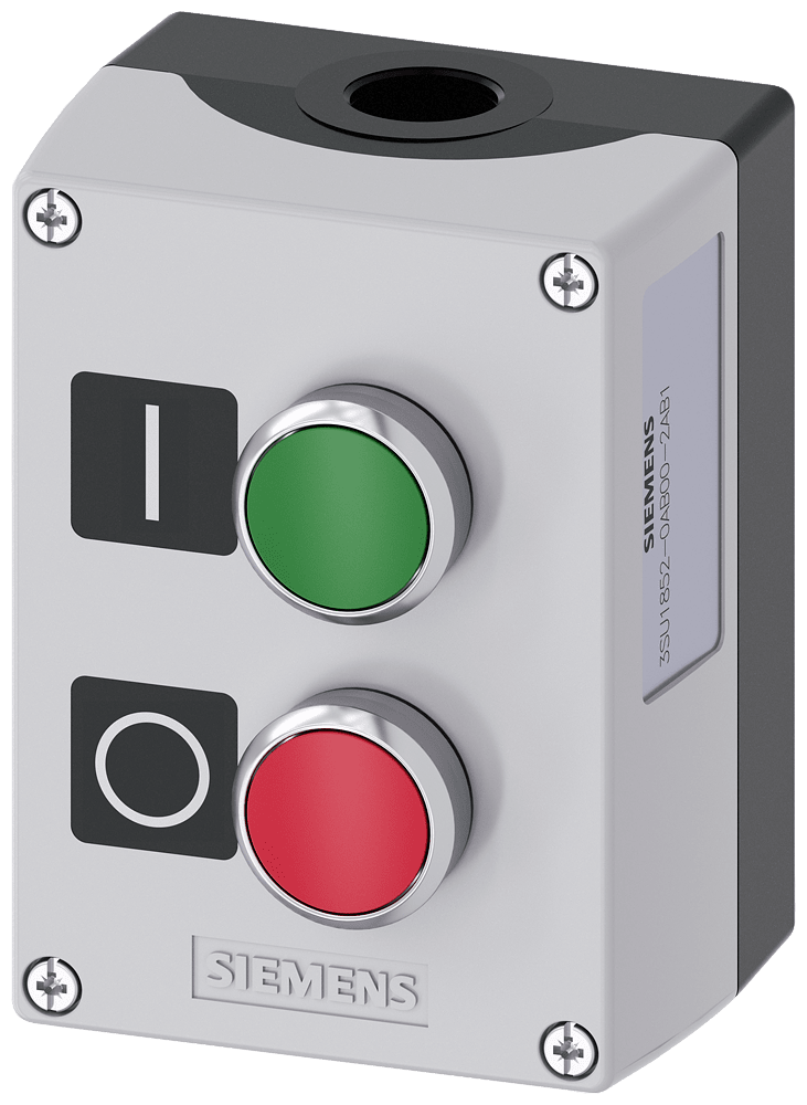 pulsantiera per dispositivi di comando, 22 mm, rotondo, materiale della pulsantiera metallo, parte superiore della pulsantiera grigia, 2 punti di comando in metallo, B=pulsante verde, targhetta: I, 1 NO, morsetti a vite, A=pulsante rosso, targhetta: O, 1 NC, morsetti a vite, fissaggio sulla base di fondo, in alto e in basso risp. 1xM20, targhette allegate Custodie SIRIUS ACT per il montaggio dei dispositivi di comando e segnalazione da 22,5 mm in caso di installazione spazialmente separata di unità di comando e quadri elettrici. Siemens offre, sotto il nome commerciale SIRIUS ACT, un portfolio esclusivo di dispositivi di comando e segnalazione con omologazioni di prodotto per il mercato mondiale in tre moderne serie di design in robusto metallo puro e plastica pregiata.L'innovativo concetto di innesto a scatto semplifica talmente il montaggio che per eseguirlo basta una sola mano e non servono attrezzi speciali. Per i fori di montaggio sono sufficienti semplici fori non scanalati, essendo già integrata una protezione antirotazione al 100 %.Grazie al grado di protezione elevato i robusti apparecchi sono adatti all'impiego industriale e in ambiente esterno. È persino possibile la pulizia con getto ad alta pressione. Né polvere, né oli, né liscivia possono comprometterne il funzionamento affidabile.Oltre che con il cablaggio standard, gli apparecchi possono essere collegati al controllore anche tramite PROFINET, AS-Interface oppure IO-Link. Potete così ridurre il vostro onere di cablaggio, minimizzare le fonti di errore e ottenere maggiore flessibilità.Il configuratore online grafico supporta in modo confortevole la scelta e l'ordinazione di singoli apparecchi, pulsantiere e iscrizioni. È disponibile una documentazione completa (ad es. manuale, dati 3D, schema di collegamento). Esecuzioni fornibili: giallo/grigio, plastica/metallo, 1-6 punti di comando, pulsantiera equipaggiabile/equipaggiata, a scelta con collegamento AS-Interface. SIRIUS ACT - Performance in Action nel comando e nella segnalazione. Semplici da montare, altamente performanti, semplicemente perfetti.