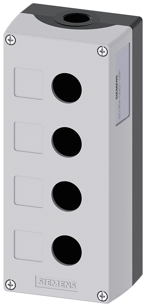 Pulsantiera per dispositivi di comando, 22 mm, rotondo, materiale della custodia metallo, parte superiore della custodia grigia, 4 punti di comando, senza equipaggiamento, approfondimento per etichetta, fissaggio sulla base di fondo, in alto e in basso rispettivamente 1xM25 Custodie SIRIUS ACT per il montaggio dei dispositivi di comando e segnalazione da 22,5 mm in caso di installazione spazialmente separata di unità di comando e quadri elettrici. Siemens offre, sotto il nome commerciale SIRIUS ACT, un portfolio esclusivo di dispositivi di comando e segnalazione con omologazioni di prodotto per il mercato mondiale in tre moderne serie di design in robusto metallo puro e plastica pregiata.L'innovativo concetto di innesto a scatto semplifica talmente il montaggio che per eseguirlo basta una sola mano e non servono attrezzi speciali. Per i fori di montaggio sono sufficienti semplici fori non scanalati, essendo già integrata una protezione antirotazione al 100 %.Grazie al grado di protezione elevato i robusti apparecchi sono adatti all'impiego industriale e in ambiente esterno. È persino possibile la pulizia con getto ad alta pressione. Né polvere, né oli, né liscivia possono comprometterne il funzionamento affidabile.Oltre che con il cablaggio standard, gli apparecchi possono essere collegati al controllore anche tramite PROFINET, AS-Interface oppure IO-Link. Potete così ridurre il vostro onere di cablaggio, minimizzare le fonti di errore e ottenere maggiore flessibilità.Il configuratore online grafico supporta in modo confortevole la scelta e l'ordinazione di singoli apparecchi, pulsantiere e iscrizioni. È disponibile una documentazione completa (ad es. manuale, dati 3D, schema di collegamento). Esecuzioni fornibili: giallo/grigio, plastica/metallo, 1-6 punti di comando, pulsantiera equipaggiabile/equipaggiata, a scelta con collegamento AS-Interface. SIRIUS ACT - Performance in Action nel comando e nella segnalazione. Semplici da montare, altamente performanti, semplicemente perfetti.