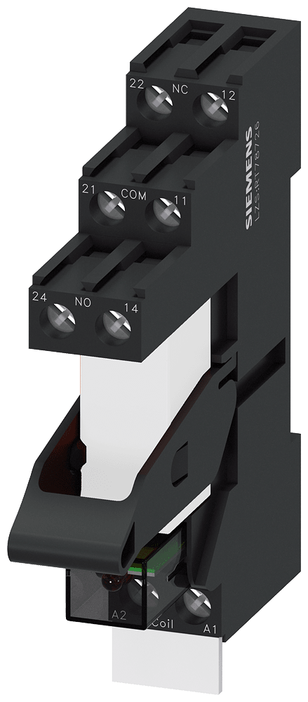SIEMENS - Relè a spina, apparecchio completo, DC 24 V, 2CO, modulo LED, zoccolo colore rosso LZS:RT4B4L24