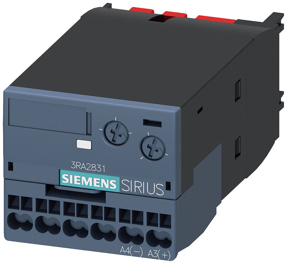 relè elettronico a tempo, ritardato all'eccitazione, con uscita statica, intervallo di tempo 0,05...100 s, AC/DC 90...240 V, 50/60 Hz, varistore per lo smorzamento delle bobine del contattore integrato, morsetti a molla, innestabile a scatto sul lato frontale per contattori 3RT203 / 3RT204 modulo funzionale SIRIUS 3RA28 per avviamento diretto per il montaggio su contattori 3RT2 e contattori ausiliari 3RH2 per processi di commutazione ritardati in circuiti di comando, di avviamento, di protezione e di regolazione, ad es. per l'avviamento di motori in cascata o il comando di post-funzionamento di ventole. L'inserimento semplice e senza attrezzi consente la realizzazione di funzioni di temporizzazione indipendenti dall'apparecchiatura di comando senza cablaggio addizionale. Si escludono così gli errori di cablaggio e si riducono i costi di collaudo. Grazie al montaggio frontale agli apparecchi si risparmia posto sulla guida DIN. Una circuitazione di protezione aggiuntiva non è necessaria. Gli apparecchi sono impiegabili in tutto il mondo grazie ad approvazioni internazionali (ad es. IEC, CCC, UL/CSA). I moduli funzionali sono fornibili per contattori 3RT2 e contattori ausiliari 3RH2 nelle grandezze costruttive da S00 a S3. Disponibili con un ampio campo di tensione AC/DC 24-240 V, uscite a scelta1 NO + 1 NC o 1 CO e con morsetti a vite o a molla. Per i moduli funzionali sono disponibili kit di cablaggio e una copertura piombabile. Relè SIRIUS - un programma per ogni evenienza.