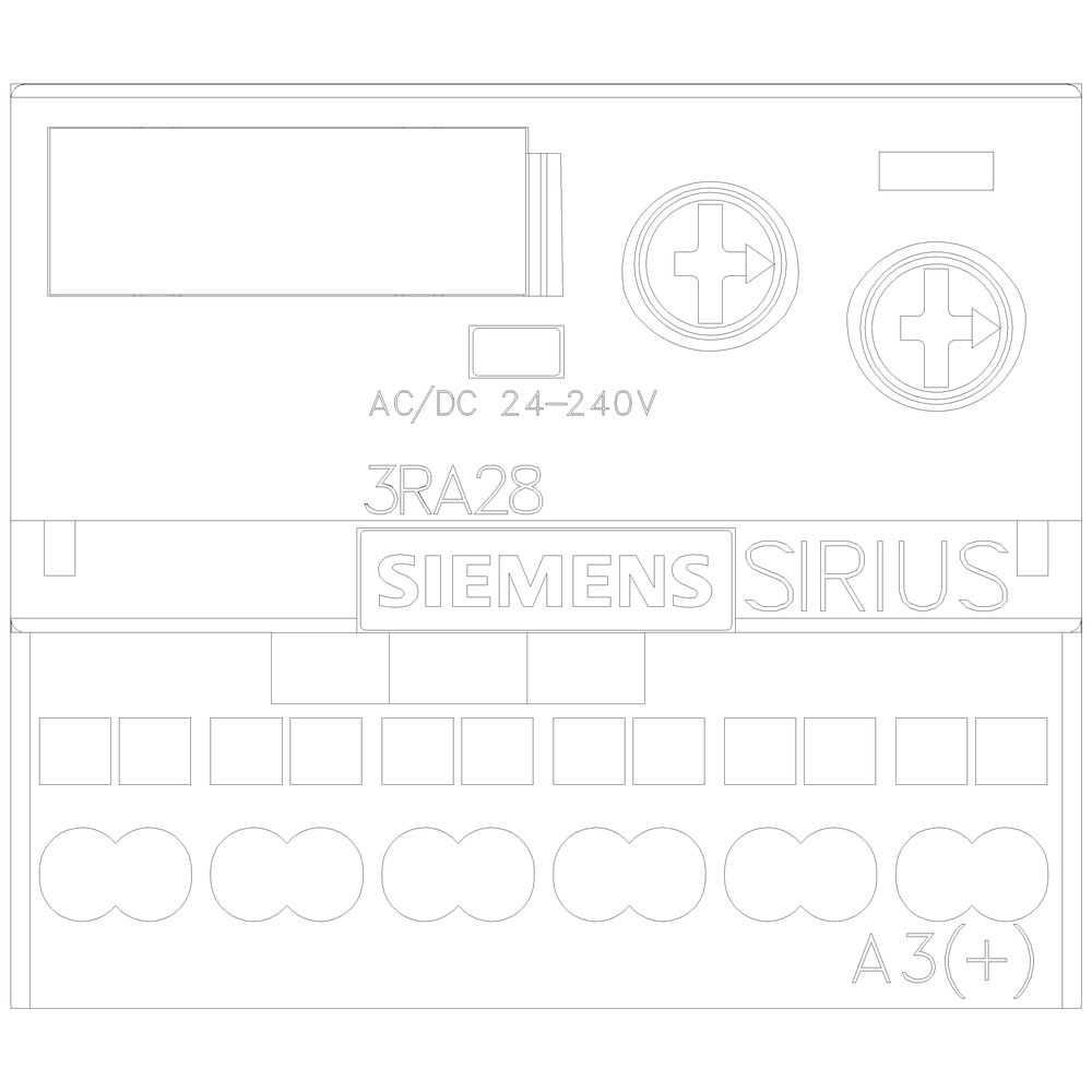 relè elettronico a tempo, ritardato all'eccitazione, con uscita statica, intervallo di tempo 0,05...100 s, AC/DC 24...240 V, 50/60 Hz, varistore per lo smorzamento delle bobine del contattore integrato, morsetti a molla, innestabile a scatto sul lato frontale per contattori 3RT201 / 3RT202 e contattori ausiliari 3RH2 modulo funzionale SIRIUS 3RA28 per avviamento diretto per il montaggio su contattori 3RT2 e contattori ausiliari 3RH2 per processi di commutazione ritardati in circuiti di comando, di avviamento, di protezione e di regolazione, ad es. per l'avviamento di motori in cascata o il comando di post-funzionamento di ventole. L'inserimento semplice e senza attrezzi consente la realizzazione di funzioni di temporizzazione indipendenti dall'apparecchiatura di comando senza cablaggio addizionale. Si escludono così gli errori di cablaggio e si riducono i costi di collaudo. Grazie al montaggio frontale agli apparecchi si risparmia posto sulla guida DIN. Una circuitazione di protezione aggiuntiva non è necessaria. Gli apparecchi sono impiegabili in tutto il mondo grazie ad approvazioni internazionali (ad es. IEC, CCC, UL/CSA). I moduli funzionali sono fornibili per contattori 3RT2 e contattori ausiliari 3RH2 nelle grandezze costruttive da S00 a S3. Disponibili con un ampio campo di tensione AC/DC 24-240 V, uscite a scelta1 NO + 1 NC o 1 CO e con morsetti a vite o a molla. Per i moduli funzionali sono disponibili kit di cablaggio e una copertura piombabile. Relè SIRIUS - un programma per ogni evenienza.