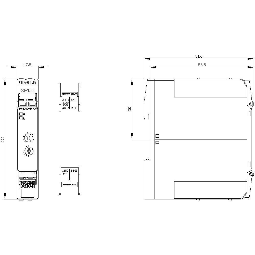SIEMENS - Relè a tempo, ritardato alla diseccitazione, 1CO, 15 campi di temporizzazione, 0,05 s ... 100 h, 3RP25352AW30