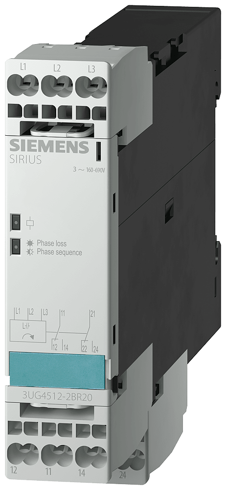 SIEMENS - Relè di controllo, analogico, controllo di mancanza di fase e sequenza fasi 3 x AC 160 ... 690 V 50 ... 60 Hz 3UG45122BR20