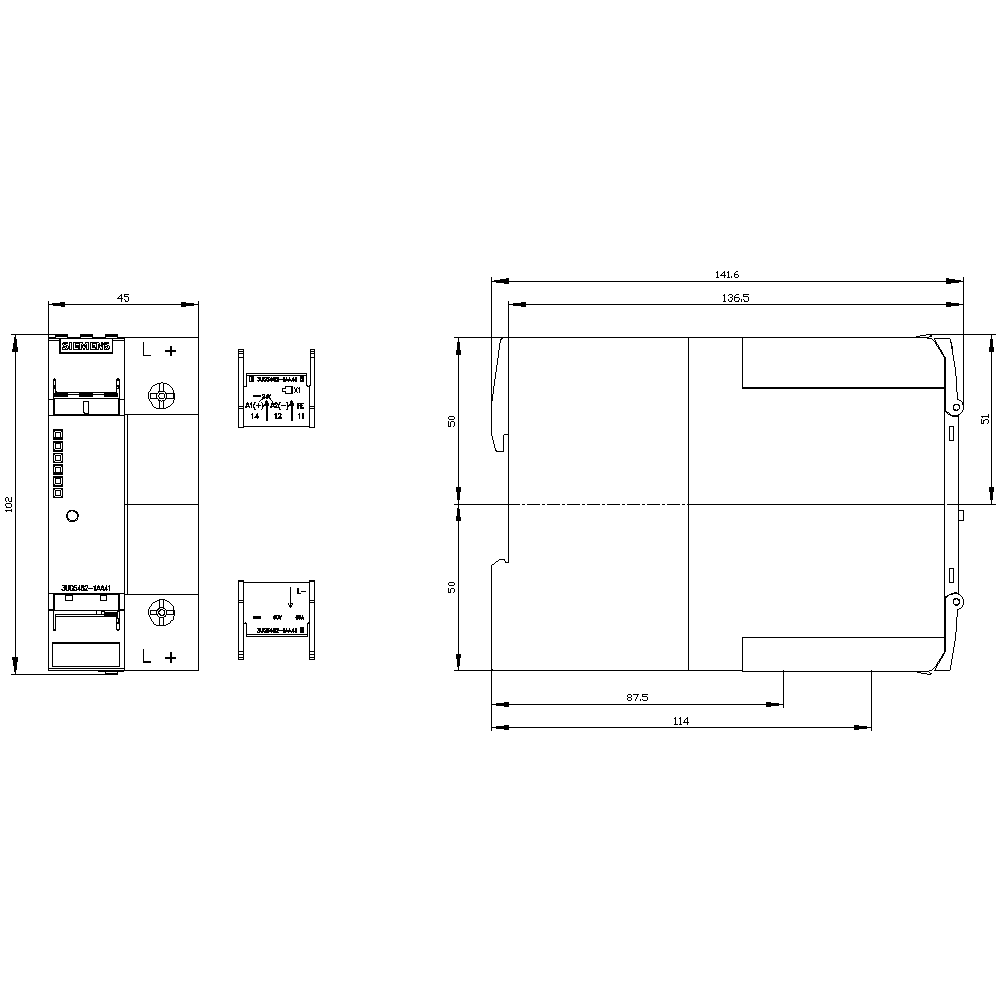 SIEMENS - Relè di controllo del carico DC per PROFINET, max. 1x63 A, max. 60 V, DC 24 V, 45 mm 3UG54621AA41