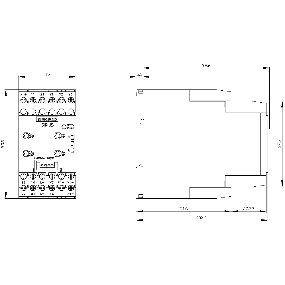 SIEMENS - Relè di controllo isolamento con impostazione analogica, fino ad AC 400 V, 15 ... 400 Hz, fino a DC 600 V, 2 CO, AC/DC 24 ... 240 V, morsetti a vite 3UG45831CW31