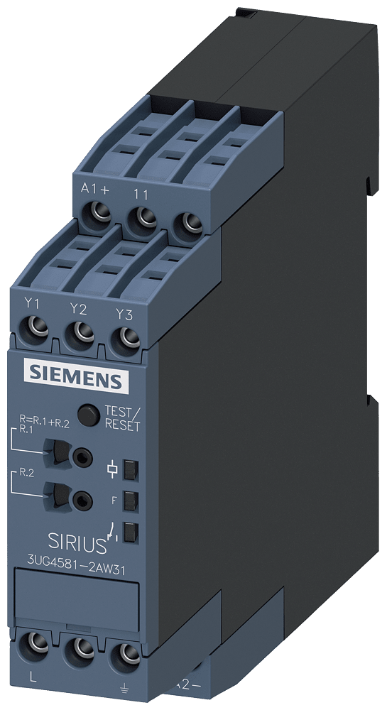 SIEMENS - Relè di controllo isolamento con impostazione analogica, fino ad AC 400 V, 50 ... 60 Hz, 1 CO, AC/DC 24 ... 240 V, morsetti a molla 3UG45812AW31