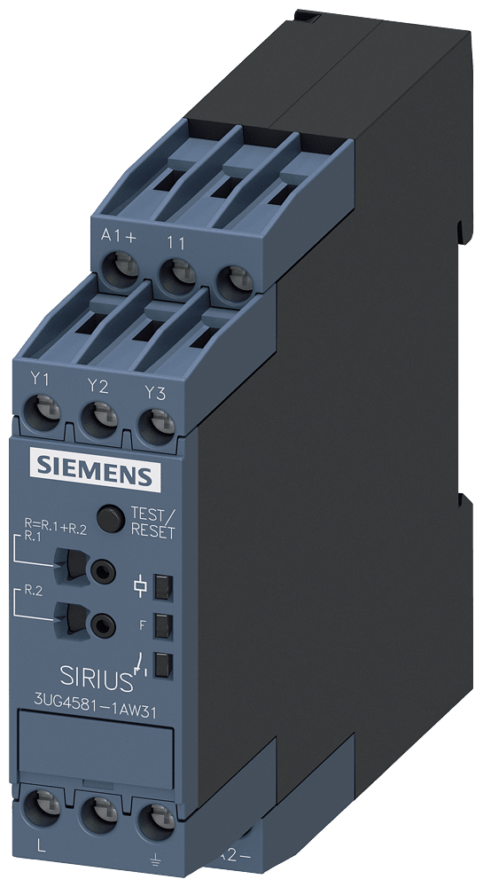 SIEMENS - Relè di controllo isolamento con impostazione analogica, fino ad AC 400 V, 50 ... 60 Hz, 1 CO, AC/DC 24 ... 240 V, morsetti a vite 3UG45811AW31