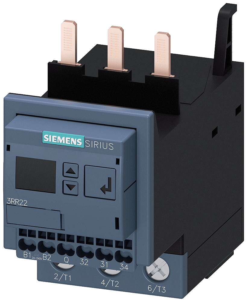 relè di controllo, applicabile al contattore 3RT2, grandezza costruttiva S2 standard, impostabile digitalmente controllo della corrente apparente/corrente attiva 8...80 A, 20...400 Hz, Trifase alimentazione AC/DC 24 ... 240 V 1 contatto CO, 1 uscita statica per allarme e avvertimento controllo di superamento in positivo e in negativo della corrente mancanza di fase, rottura conduttore sequenza delle fasi corrente di guasto corrente di bloccaggio soglie di avviso e di allarme con o senza memorizzazione errore ritardo all'avvio 0-99 s soppression(*) Relè di controllo SIRIUS 3RR2 per il montaggio su contattori SIRIUS 3RT2 o per il montaggio separato per il monitoraggio di corrente multi-fase dell'intero impianto o del processo comandato. L'affidabile controllo di rottura conduttore, mancanza di fase, sequenza delle fasi, corrente di guasto, bloccaggio del motore etc. assicura un'elevata disponibilità dell'impianto. Visualizzazioni di valori reali, segnalazioni di stato e chiare segnalazioni di errori consentono una diagnostica rapida e affidabile. È pure possibile il collegamento a controllore tramite IO-Link. Si risparmiano inoltre costi, poiché solo un apparecchio è necessario per il monitoraggio di un motore lungo l'intera curva della coppia e inoltre non serve alcun trasformatore di corrente separato. Nessun onere di cablaggio addizionale nel circuito principale grazie al montaggio diretto sui contattori 3RT2. È inoltre possibile utilizzare gli alimentatori da rete wide-range per l'impiego in tutto il mondo. Sono disponibili varianti a 2 fasi con impostazione analogica e digitale, varianti a 3 fasi (con e senza IO-Link), rispettivamente in tre grandezze costruttive con diversi campi di corrente di misura, con due tensioni di alimentazione diverse e due tipi di connessioni. Per il montaggio separato dei relè di controllo 3RR2 sono disponibili dei supporti adeguati. Relè SIRIUS - un programma per ogni evenienza.