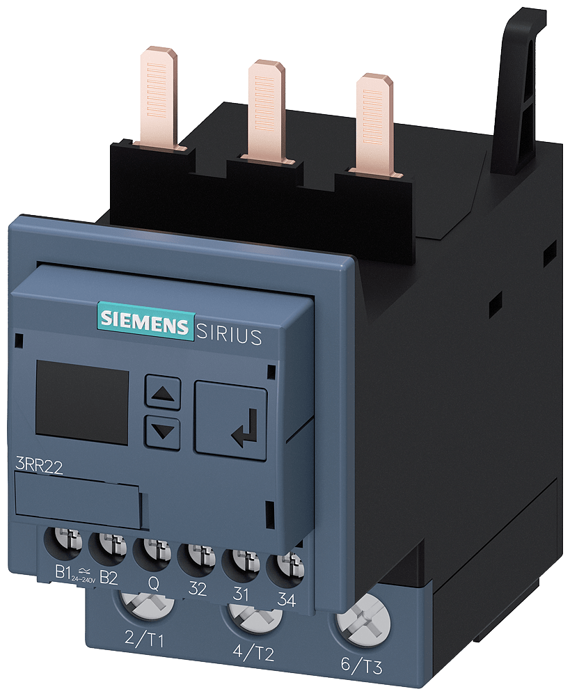 relè di controllo, applicabile al contattore 3RT2, grandezza costruttiva S2 standard, impostabile digitalmente controllo della corrente apparente/corrente attiva 8...80 A, 20...400 Hz, Trifase alimentazione AC/DC 24 ... 240 V 1 contatto CO, 1 uscita statica per allarme e avvertimento controllo di superamento in positivo e in negativo della corrente mancanza di fase, rottura conduttore sequenza delle fasi corrente di guasto corrente di bloccaggio soglie di avviso e di allarme con o senza memorizzazione errore ritardo all'avvio 0-99 s soppression(*) Relè di controllo SIRIUS 3RR2 per il montaggio su contattori SIRIUS 3RT2 o per il montaggio separato per il monitoraggio di corrente multi-fase dell'intero impianto o del processo comandato. L'affidabile controllo di rottura conduttore, mancanza di fase, sequenza delle fasi, corrente di guasto, bloccaggio del motore etc. assicura un'elevata disponibilità dell'impianto. Visualizzazioni di valori reali, segnalazioni di stato e chiare segnalazioni di errori consentono una diagnostica rapida e affidabile. È pure possibile il collegamento a controllore tramite IO-Link. Si risparmiano inoltre costi, poiché solo un apparecchio è necessario per il monitoraggio di un motore lungo l'intera curva della coppia e inoltre non serve alcun trasformatore di corrente separato. Nessun onere di cablaggio addizionale nel circuito principale grazie al montaggio diretto sui contattori 3RT2. È inoltre possibile utilizzare gli alimentatori da rete wide-range per l'impiego in tutto il mondo. Sono disponibili varianti a 2 fasi con impostazione analogica e digitale, varianti a 3 fasi (con e senza IO-Link), rispettivamente in tre grandezze costruttive con diversi campi di corrente di misura, con due tensioni di alimentazione diverse e due tipi di connessioni. Per il montaggio separato dei relè di controllo 3RR2 sono disponibili dei supporti adeguati. Relè SIRIUS - un programma per ogni evenienza.