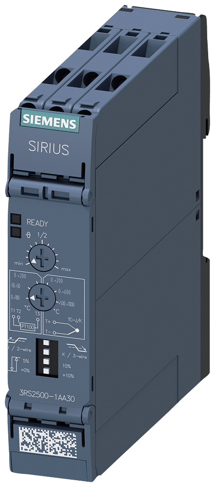 SIEMENS - Relè di controllo temperatura, Pt100, termocoppia J, K, AC/DC 24 V, 1CO, morsetti a vite 3RS25001AA30