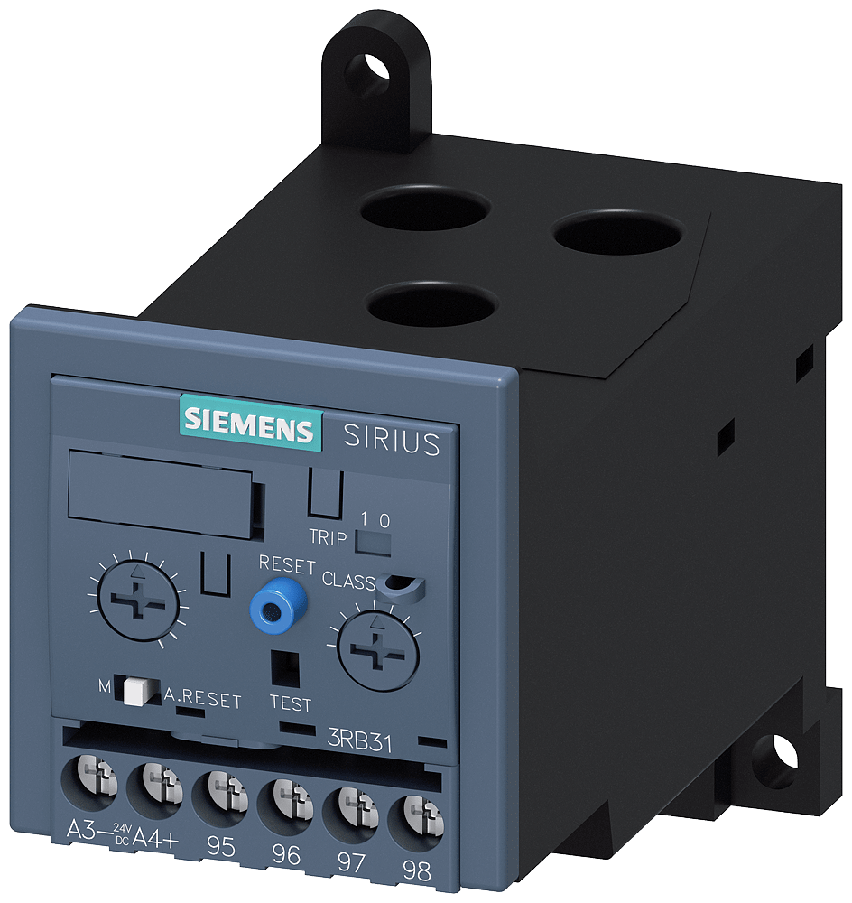 relè di sovraccarico 20...80 A elettronico per protezione motore grandezza costruttiva S2, CLASS 5E...30E montaggio separato circuito principale: trasformatore a foro passante circuito ausiliario: a vite reset manuale-automatico rilevamento di guasto verso terra interno relè di sovraccarico elettronico SIRIUS 3RB3 per la protezione in funzione della corrente di utilizzatori con avviamento normale e pesante contro un surriscaldamento eccessivo causato da sovraccarico, asimmetria delle fasi o mancanza di fase. Grazie agli ampi campi di regolazione della corrente e alle diverse caratteristiche di sgancio, già pochi tipi di apparecchi possono soddisfare le esigenze di intere serie costruttive di motori. La loro potenza dissipata ridotta comporta un'alta efficienza energetica e un basso riscaldamento nel quadro elettrico. Sono ovviamente disponibili omologazioni internazionali (ad es. IEC e UL/CSA) ed esecuzioni per applicazioni in aree a rischio di esplosione (ATEX). L'esecuzione 3RB31 offre funzionalità ampliate come reset remoto elettrico integrato, riconoscimento di guasto verso terra e altro ancora. Fornibili con diversi campi di regolazione dello sganciatore di sovraccarico e con diverse classi di sgancio. Essi sono disponibili con morsetti a vite o a molla per un collegamento rapido, esente da manutenzione e resistente alle vibrazioni nonché per montaggio separato. Gli accessori sono omogeneamente adatti per tutte le grandezze costruttive da S00 a S3. Semplice, efficiente, sempre attuale - il sistema modulare SIRIUS.