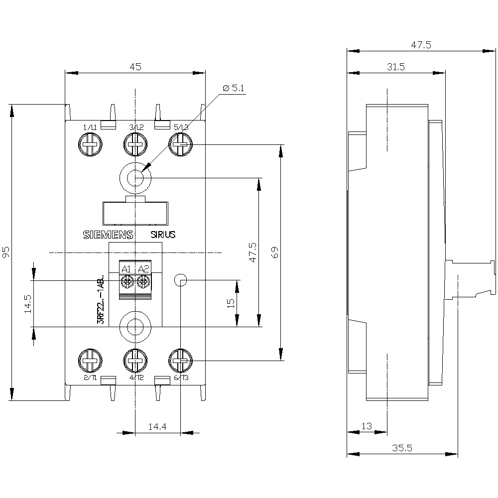 SIEMENS - Relè statico 2RF2, trifase, 30 A 48 ... 600 V/AC 110 V, controllato a 2 fasi 3RF22301AB35