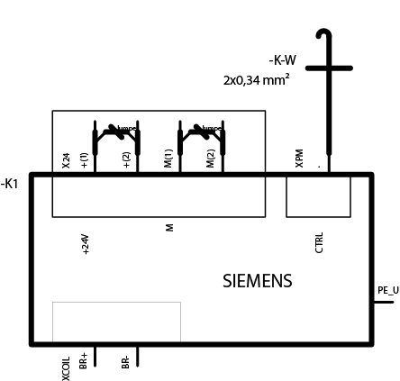 SINAMICS relè freno SAFE per Power Module con SINAMICS S120 approvato da V2.6! Safe Brake Relay SINAMICS - Safe Brake Relay per Power Module con SINAMICS S120 per il convertitore di frequenza modulare SINAMICS G120 e il servoconvertitore SINAMICS S110. Il Safe Brake Relay consente di realizzare un collegamento sicuro tra il Power Module e un freno motore elettromeccanico. In questo modo si può realizzare un comando del freno motore in modo sicuro direttamente con la Control Unit CU250S‑2 in accordo alla IEC 61508 SIL 2 e EN ISO 13849‑1 PL d e Categoria 3 La dotazione di fornitura delSafe Brake Relay comprende: Due cavi profilati per il collegamento alla presa CTRL del Power Module - lunghezza 0,32 m per le grandezze costruttive FSA ... FSC e - lunghezza 0,55 m per le grandezze costruttive FSD ... FSF. SINAMICS - l'azionamento che fa per me.