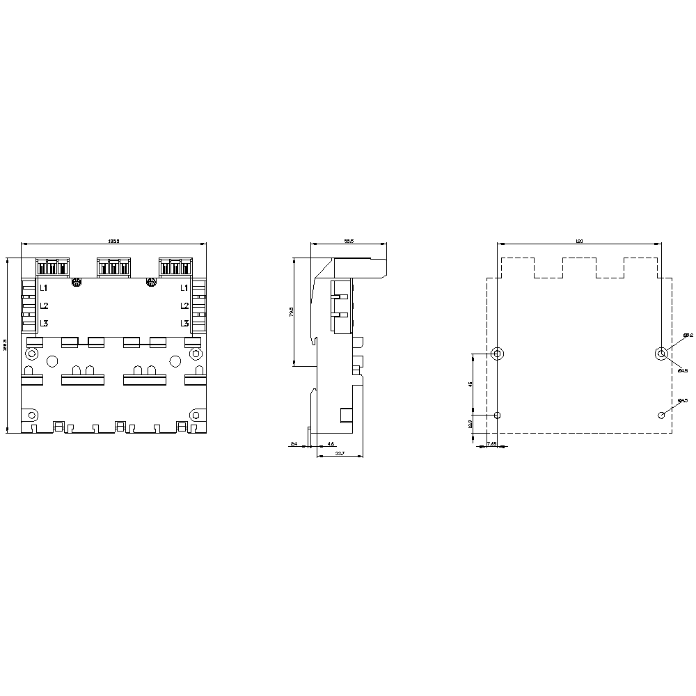SIEMENS - Sbarra collettrice trifase incl. connettore di ampliamento per 3 interruttori automatici S00 e S0 3RV29174B