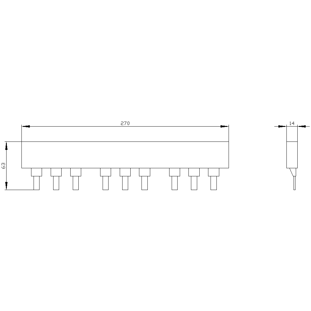 sbarra collettrice trifase, per 3x grandezza costruttiva NH000 Accessori per sezionatori sottocarico a fusibili 3NP1 contiene 5 sbarre Sbarra collettrice trifase SENTRON 3NP19 come accessori per sezionatori sottocarico a fusibili 3NP1. Queste parti accessorie sono facili e comode da montare e collegare. Grazie alla protezione contro i contatti accidentali di serie, la sicurezza è garantita in modo affidabile durante l'installazione. Tecnica ottimale per la vostra sicurezza - solo da Siemens.