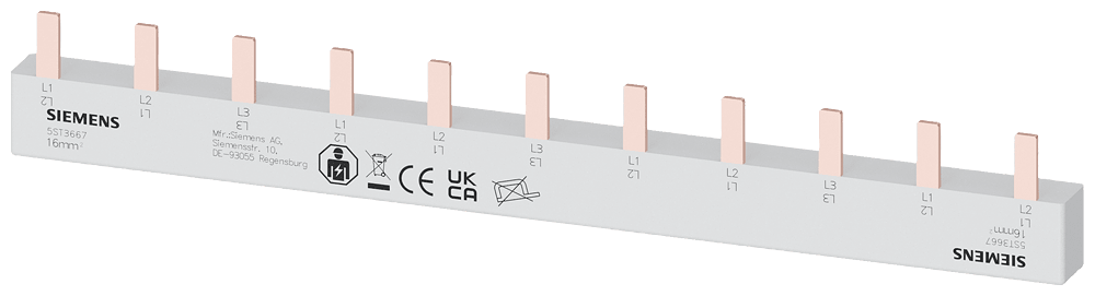 SIEMENS - sbarra di collegamento a punte, 10 mm2 collegamento: trifase/+ 8x fase protetto contro i contatti accidentali per 1 interruttore differenziale, a 4...