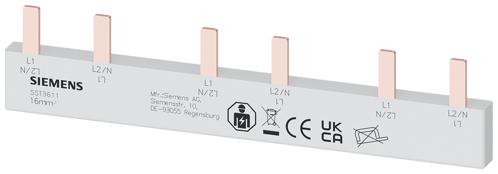 SIEMENS - Sbarra di collegamento a punte 10mm², bifase, 3x (1 fase+N+AUX), 121mm 5ST3611