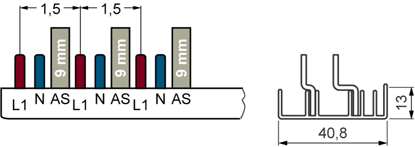 SIEMENS - Sbarra di collegamento a punte 10mm², bifase, 40x (1 fase+N+AUX), 1055mm sezionabile