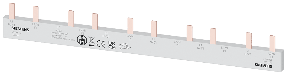 SIEMENS - Sbarra di collegamento a punte 10mm², bifase, 5x (1 fase+N+AUX), 210mm
