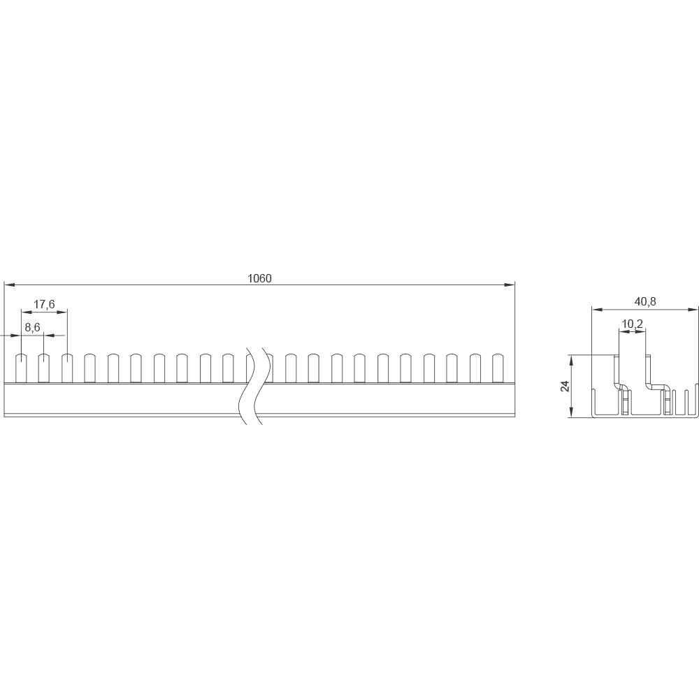 SIEMENS - Sbarra di collegamento a punte 10mm², bifase, 60x (1 fase+N), 1060mm sezionabile 5ST37740