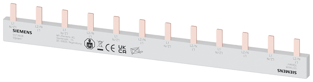SIEMENS - Sbarra di collegamento a punte 10mm², bifase, 6x (1 fase+N), 210mm